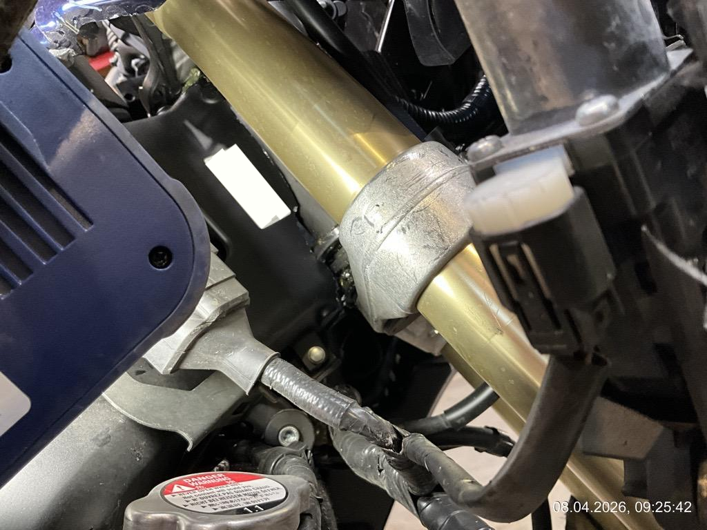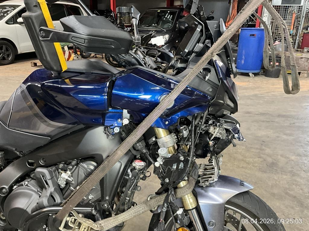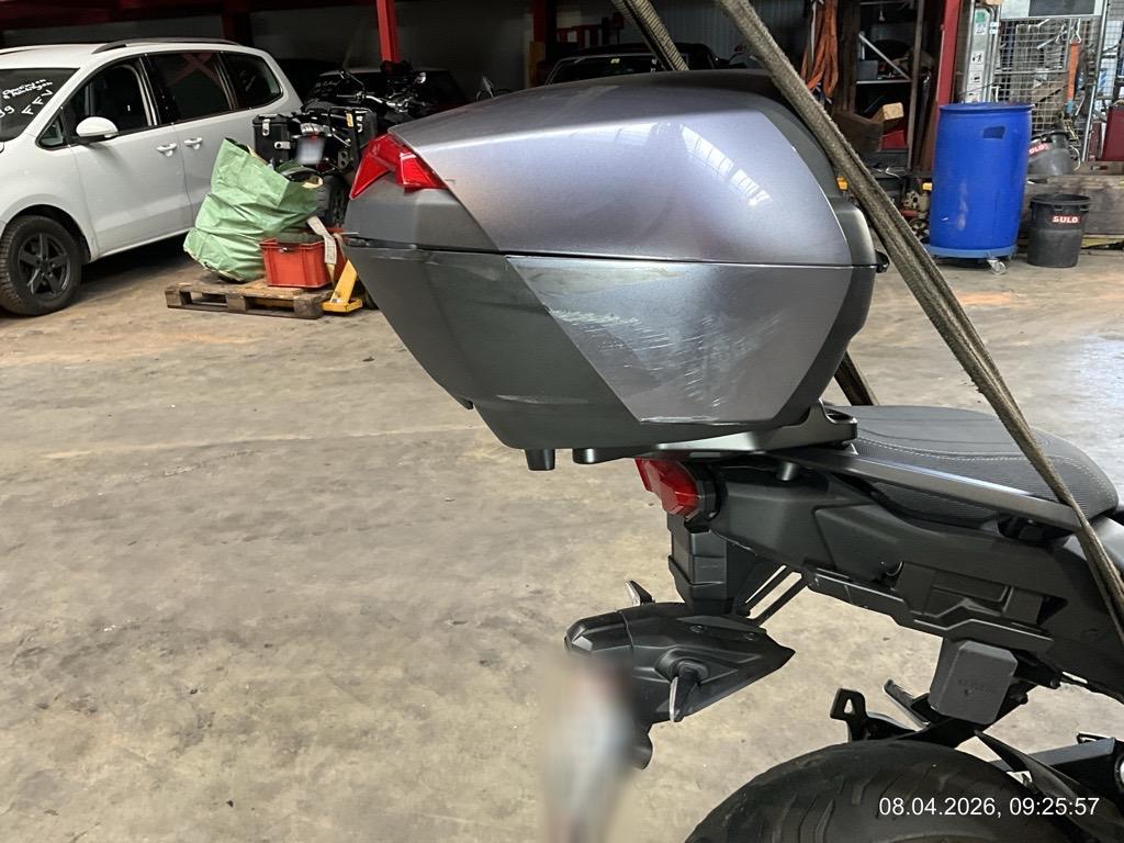 Front-/ Seiteschaden rechts: Front komplett eingedrückt. Gabeln/Rahmen vorne gebrochen. Rad, Verschalungen, Scheibe, Lenker, Spiegel, Bremse vorne alles zerkratzt und gebrochen. Schutzbügel, Auspuff und Top Case zerkratzt - AUFZÄHLUNG NICHT ABSCHLIESSEND / Seitenkoffer werden auch dazu geliefert, sind beim MR deponiert.