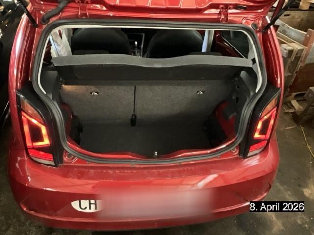 Regensensor, Dachhimmel in light grey, Licht: Lichtdreh- und Heizungsschalter in Chrom, Dekorleiste an der Heckklappe in Blau, Media: Smartphone Integration "maps + more dock", Multifunktionsanzeige, Gepäckraumbeleuchtung, Innenspiegel manuell abblendbar, Dreipunkt-Automatiksicherheitsgurte hinten, aussen mit ECE-Label, Schwellerverbreiterung in Wagenfarbe, Räder: Tire Mobility Set: 12-Volt-Kompressor und Reifendichtmittel, Airbag: Airbag für Fahrer und Beifahrer, mit Beifahrerairbag-Deaktivierung über Schlüssel, Garantie: VW Garantie: 2 Jahre ohne Kilometerbegrenzung, Warnton und -leuchte für nicht angelegten Fahrergurt, optisch für den Fond, Ladekabel Mode 3 Typ 2, 16 A Stecker fahrzeugseitig und netzseitig - geeignet für öffentliche AC-Ladeinfrastruktur, Bordcomputer, Ablagefächer in die Türen (vorne mit Halterung für 1,0-l-Flaschen), 4 Türen, Seitenscheiben hinten ausstellbar, Garantie: VW Garantie 3 Jahre Lack-Garantie, Garantie: VW Garantie: 12 Jahre Karosserie-Garantie gegen Durchrostung, Media: USB-Schnittstelle auch für iPod/iPhone, Media: Telefonschnittstelle, Warndreieck, Assist: Lane Assist, Taste für Fahrprofilauswahl (eco, eco+), Räder: Stahlräder - 4 Stahlräder 5 J x 14 - Reifen 165/70 R14 Hankook Reifen - Mit Radvollblenden, Sitze: Sitzplätze 2 vorne / 2 hinten / Rücksitzbank ungeteilt, Lehne asymetrisch geteilt umklappbar, Ladedose DC-Schnellladen mit bis zu 40 kW, Combo Stecker (Combined Charging System CCS), Dreipunkt-Automatiksicherheitsgurte vorne, Frontscheibe Wärmeschutzglas, Licht: Halogen-Hauptscheinwerfer und Blinkleuchten unter gemeinsamer Klarglasabdeckung, Reifendruckkontrollanzeige, Schalthebelknauf in Kunststoff, Media: Digitaler Radioempfang DAB+, Media: Radiosystem "composition phone" mit 5.0"-Farbdisplay - Multimediabuchse AUX-IN, FM-Empfang, SD-Kartenschacht und Mobiltelefonvorbereitung (Bluetooth), Sitze: Vordersitze mit höheneinstellung, Sitze: Sitzbelegungserkennung hinten, Dash pad "black cube", Taschenhalter, Gepäckraumboden in 2 Stufen höheneinstellbar, Lackierung: Uni-Lackierung (teal blue uni), Gepäckraumabdeckung inkl. Gepäcknetz, Licht: Fahrlichtschaltung automatisch, mit Tagfahrlicht, Leaving home-Funktion - inkl. manueller Coming home-Funktion, Car-Net und e-Remote - Fernsteuerung der Heizung/Klimatisierung per Mobiltelefon, Programmierung der Vorklimatisierung auch ohne Stromnetzverbindung, Abrufen der Informationen über die Batterieladung, Einstellen der Abfahrtszeit, Abfrage allgemeiner Fahrzeuginformationen), ersten 3 Jahre Vertragslaufzeit gratis, Aussenspiegelgehäuse in Schwarz, 2 Kopfstützen hinten, höhenverstellbar (L-Form), Stossfänger in Wagenfarbe mit Lufteinlässen in Wabenstruktur, Sonnenblende für Fahrer und Beifahrer, auf Beifahrerseite mit Makeup-Up-Spiegel, ISOFIX-Halteösen (Vorrichtung zur Befestigung von 2 Kindersitzen auf der Rücksitzbank) - inkl. Top-Tether-Vorrichtung, Lenkrad: Lenkrad Kunststoff, Ladedose AC-Normalladen mit bis zu 7.2 kW, Typ 2 Stecker, Airbag: Kopf- und Seitenairbag vorne, kombiniert Kopfairbagsystem für Frontund Fondpassagiere - inkl. Seitenairbags vorne, Zentralverriegelung ohne Safe-Sicherung inkl. Funkfernbedienung, Getriebe: 1-Gang Getriebe automatisiert, Bremsenergierückgewinnung, Wegfahrsperre elektronisch, Elektronisches Stabilisierungsprogramm (ESP) inkl. ABS mit Bremsassistent - inkl. ASR, EBV, MSRund Berganfahrassistent, Entfall des Schriftzugs auf der Heckklappe "e-up!", Basisladekabel AC-Normalladen mit bis zu 1.8 kW, Typ 2 Stecker fahrzeugseitig und Typ 13 Stecker net - Haushaltssteckdose, Scheibenwischer vorne und Heckscheibenwischer mit Intervallschaltung, Licht: Nebelschlussleuchte, Klima: Klimaanlage "Climatronic", Heckscheibenheizung, Ladekabelunterbringung im Kofferraum, Servolenkung elektromechanisch, Polster: Sitzbezüge in Stoff Dessin "fusion", Nichtraucherausführung, 12-V-Steckdose vorne, Bordwerkzeug und Wagenheber, Handbremshebelgriff in Kunststoff, Fensterheber vorne elektrisch, Assist: Multifunktionskamera, Kombiinstrument mit elektronischem Tachometer in Chrom (e-spezifisch), Licht: Drittes Bremslicht, Media: Sound "plus" - 6 Lautsprecher, Hochton-Signalhorn, Aussenspiegel mit integrierten Blinker, Zentralverriegelung mit Funkfernbedienung mit zwei Funkklappschlüssel, Sitze: Kopfstützen vorne im Sitz integriert, Assist: Verkehrszeichenerkennung über Navigationssystem maps&more, Licht: LED Tagfahrlicht im Lüftungsgitter, Ohne zusätzliche Leuchten (Beleuchtung innen), Scheibenbremsen vorne, innenbelüftet / Trommelbremsen hinten, Radsicherungsschrauben, Sound Aktor mit "e-Sound", Mittelkonsole inkl. 1 Becherhalter vorne und 1 Becherhalter hinten, Handschuhfach mit Klappe, Garantie: VW Garantie: 8 Jahre oder 160’000 km Garantie auf HV-Batterie (mindestens 70% der Netto-Kapazität), Ohne Fussmatten