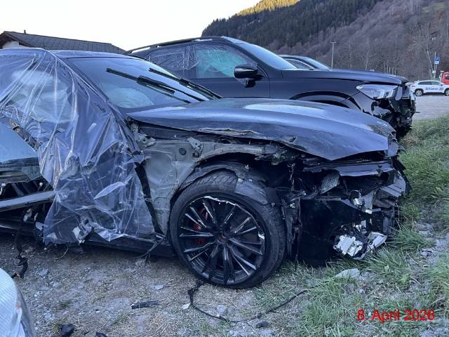Beschreibung der Schäden: Airbag vorne alle Kopfairbag beidseitig ausgelöst Gurtstraffer vorne beidseitig ausgelöst Frontscheibe gebrochen Motorhaube eingedrückt Stossstange Scheinwerfer gebrochen Kühlerpaket verformt Radaufhängung vorne beidseitig verformt Reifen Felgen defekt Kotflügel Türen beidseitig eingedrückt Seitenwand hinten links eingedrückt Felge hinten links zerkratzt Vorbestandene Schäden: keine ersichtlich