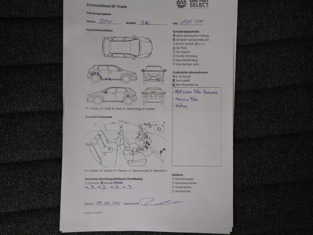 Keine technische Prüfung (Werkstatttest) vorgenommen Service ist überfällig. Diverse Schäden an Karosserie/Lack. Kl. Steinschlag auf Frontscheibe. Fahrzeug ab Platz, ohne Garantie und Aufbereitung. Motor Getriebe Vorderachse Hinterachse Airbags ausgelöst: 0 unbekannt ( Abfallcode 16.01.04ak )
