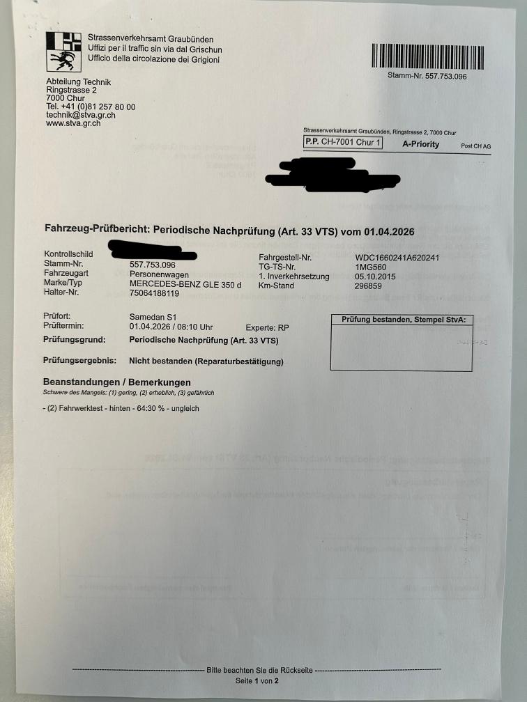 Fahrzeug aus erster Hand, alle Service durch uns ausgeführt, MFK-Mängel Stossdämpfer hinten defekt. Für sichtbare und nicht sichtbare Mängel wird nicht gehaftet. Keine Minderung und Wandelung möglich. Keine Nachverhandlungen. Das Fahrzeug muss innerhalb von 7 Tagen nach Zuschlag abgeholt werden. Bitte beachten Sie, dass nach Ablauf dieser Frist Standgebühren in Höhe von CHF 20.- pro Tag anfallen. Wir danken Ihnen im Voraus für Ihr Verständnis und Ihre Kooperation. Die Bezahlung kann entweder Bar bei der Abholung erfolgen oder im Voraus per Überweisung getätigt werden.