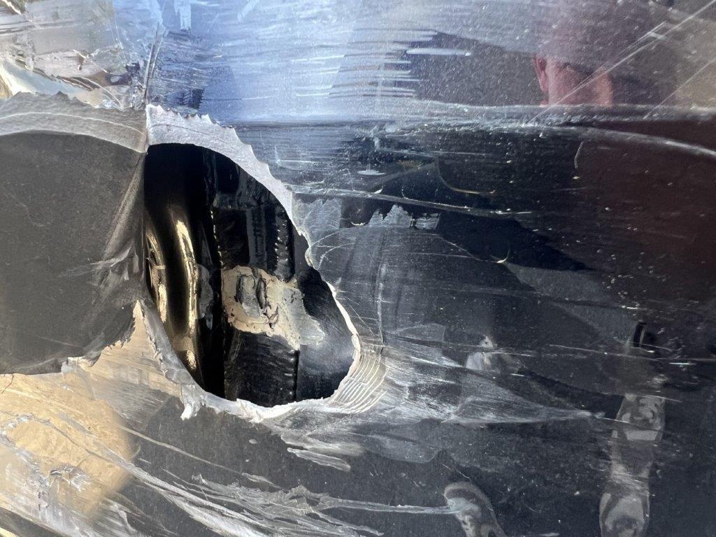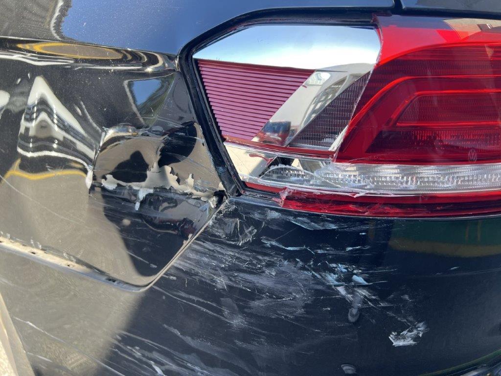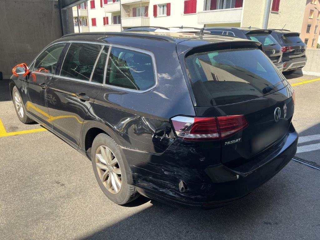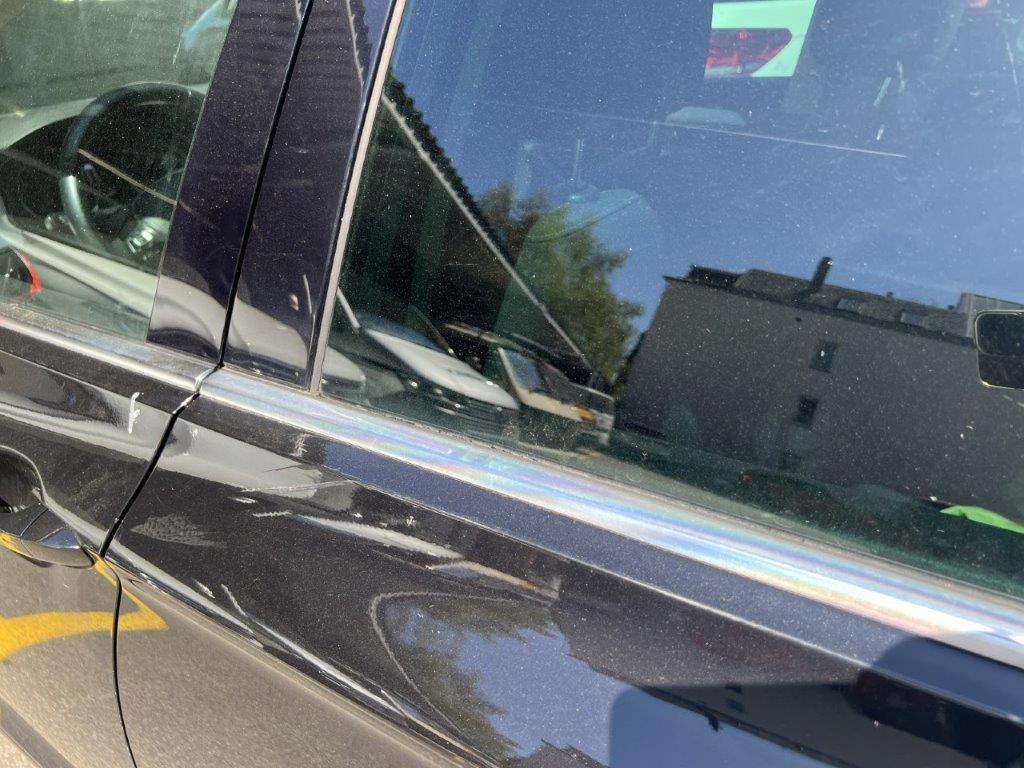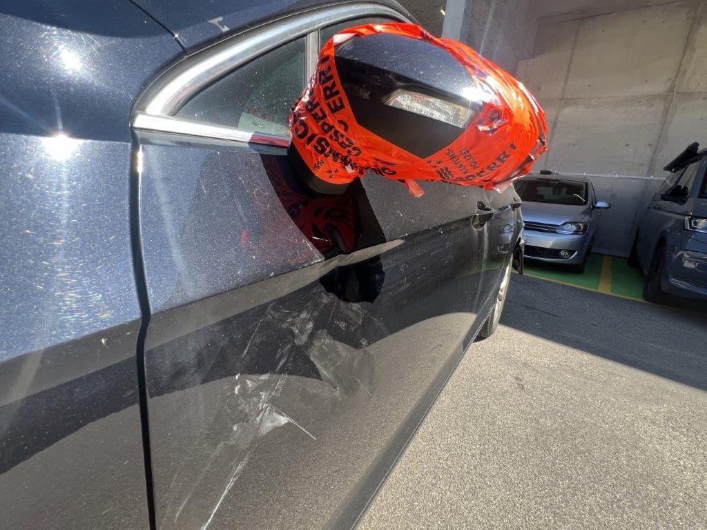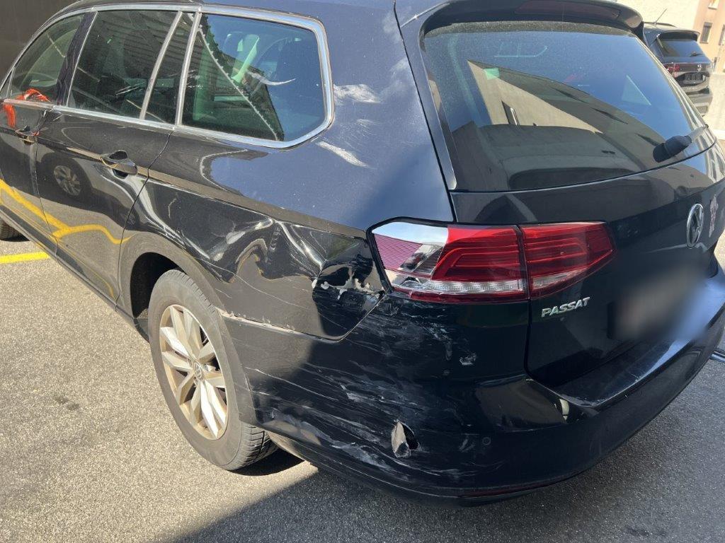 Anprall linke Seite: Dabei wurde die Stossstange hinten, die Seitenwand, beide Türen, der Rückspiegel und das hintere Seitenfenster beschädigt.