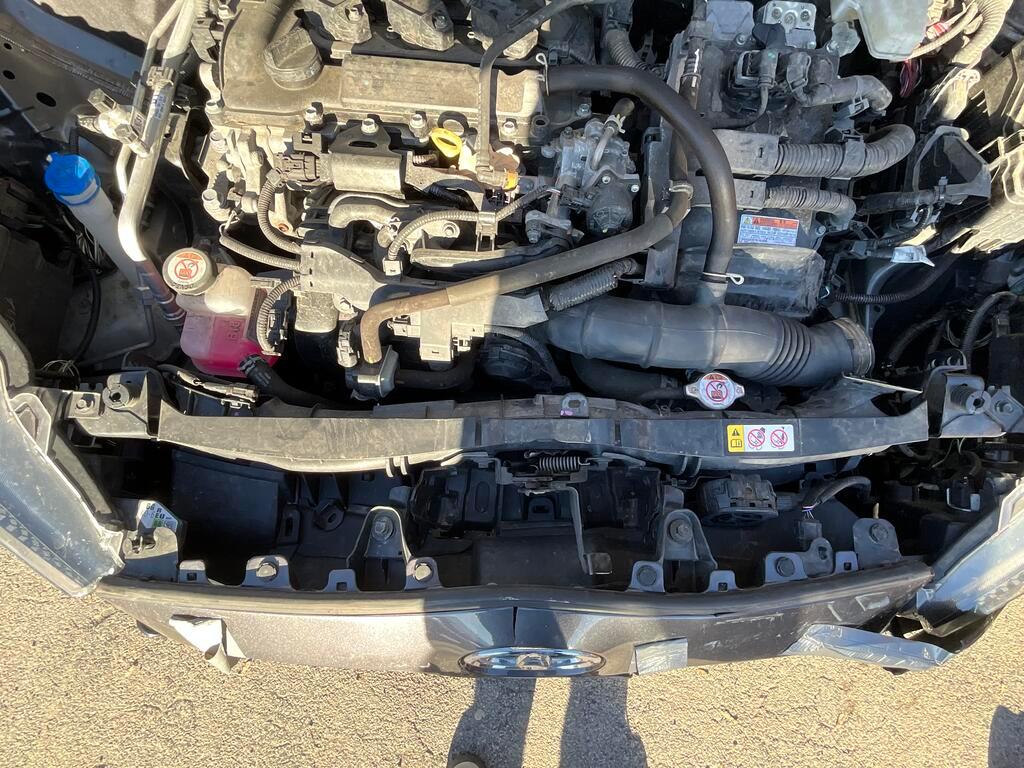 Collision avant : Pare-chocs, calandre, moulures, capot, radiateur, condenseur, tôle frontale, ventilateur et longeron gauche endommagés. / Préexistant pas constaté