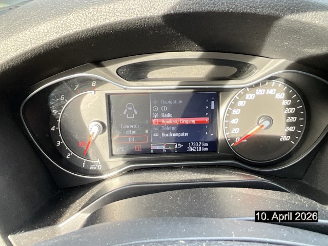 Beide Make up-Spiegel beleuchtet, Elektrische Kindersicherung, Dachhimmel Premium, Frontscheibenheizung, Licht: Drittes Bremslicht, Kofferraummatte, Fahrlichtautomatik, Ausstellfenster hinten, Klima: 2-Zonen-Klimaautomatik, Zusatzheizung, Wassertemperaturanzeige, Licht: LED Heckleuchten, Airbag: Knie-Airbag für Fahrer, Licht: Nebelscheinwerfer, Heckscheiben-Wisch-/Waschanlage, Aussenspiegel rechts und links beheizbar und elektrisch verstellbar mit Einstiegsbeleuchtung, Dachkonsole lang, Kinderüberwachungs- spiegel, Stossstangen in Wagenfarbe, Wegfahrsperre elektronisch, Airbag: Fahrer und Beifahrer, Assist: Tempomat, Radio/CD 6000CD RDS mit Fernbedienung, Seitenaufprall-Schutzsystem, Drehzahlmesser, Lenkrad und Schalthebelgriff in Leder, Elektronisches Sicherheits- und Stabilitätsprogramm (ESP), Schutzleisten in Wagenfarbe, Höhenverstellbare Gurten vorne, Regensensor für Scheibenwischer vorne, Sitze: Kreuzstützen für Vordersitze verstellbar, Assist: Berganfahrassistent, Aktive Kopfstützen, ISOFIX Kindersitzvorrichtung, Elektrische Fensterheber vorne + hinten, Assist: Bremsassistent (BAS), Tageskilometerzähler, Aussentemperaturanzeige, Fahrersitz elektrisch verstellbar, Einstiegsschienen vorne, Scheibenwischer vorne mit Intervall, Reflektierende Frontscheibe, Radiovorbereitung, Antenne, Entstörung und 8 LS, ABS und TCS, Teppichfussmatten vorne und hinten, Cupholder vorne und hinten, Gurtstraffer vorne, Airbag: Window-Kopfairbags, Leseleuchten, Klima: Pollenfilter (Staubfilter), Geruchsfilter, Laderaumabdeckung, Licht: Nebelschlussleuchte, Getönte Scheiben, Licht: LED-Tagfahrlicht, Zentralverriegelung mit Fernbedienung und Globalschliessung, Servolenkung, Sequentielles 6-Gang-Getriebe mit Automatikfunktion PowerShift, Katalysator geregelt, Innenspiegel automatisch abblendbar, Premium-Mittelkonsole, Ablagefach im Fussboden (Fond), Airbag: Seitenairbag für Fahrer und Beifahrer, Brillenablage, Räder: Reifenreparatur-Set (Tire Fit), FordConvers+ Fahrerinformationssystem (Infosystem inkl.Steuerung Mobiltelefon, CD, MP3 und CD-Wechsler), Scheibenwaschdüsen beheizt, Sitze: Vordersitze heizbar