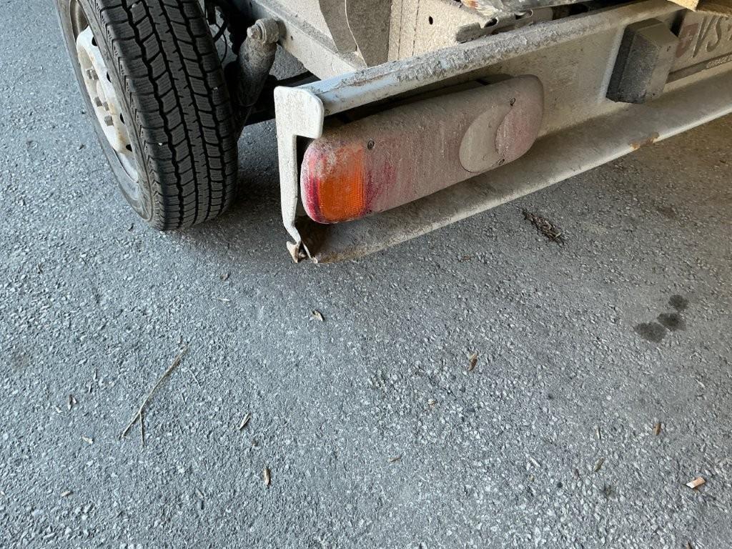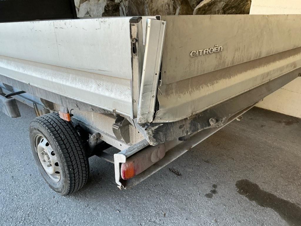Pont arrière maillé, ridelles et faux chassis pliés. Panneau de cabine arrière pied de cabine arrière gauche enfoncés, pare-chocs arr plié, feu arrd cassé.