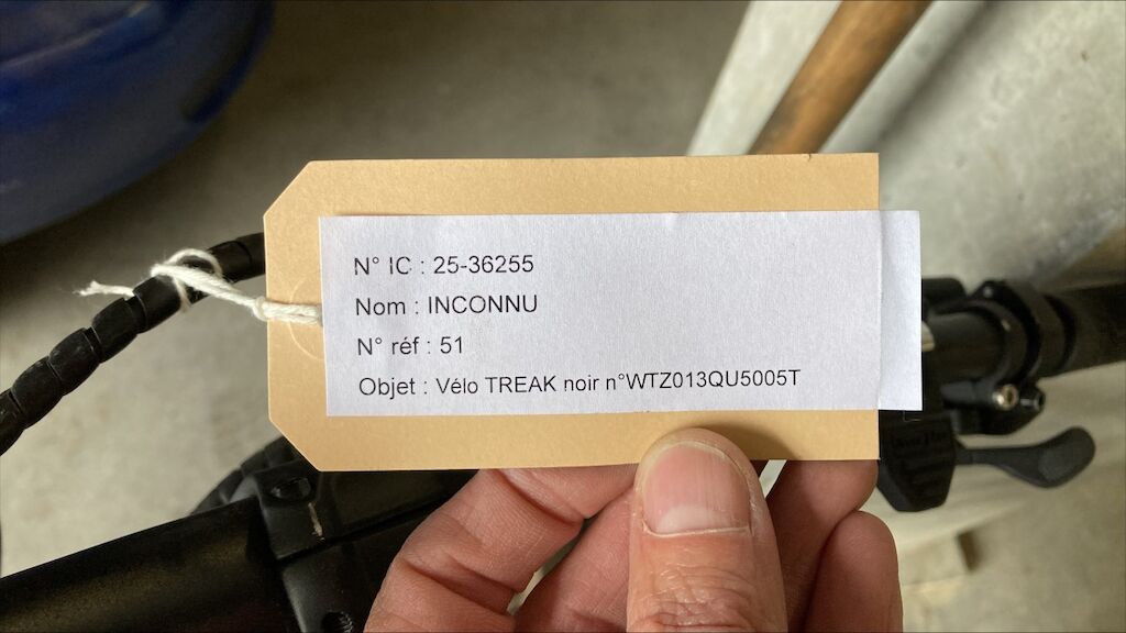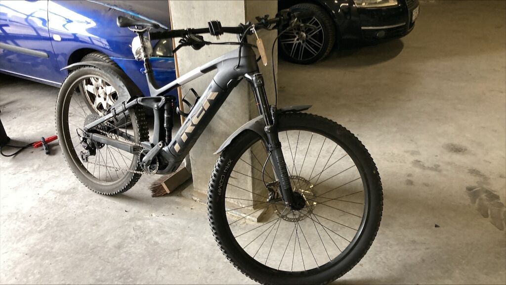 Vélo volé et retrouvé, cadre, pédalier, derailleur, fourche griffés, chaîne rouillée, poignée du guidon droite marquée. Etat du moteur et de la transmission pas contrôlables. Motor Getriebe Vorderachse Hinterachse Airbags ausgelöst: 0 Nein ( Abfallcode 16.01.04ak )