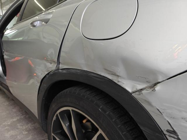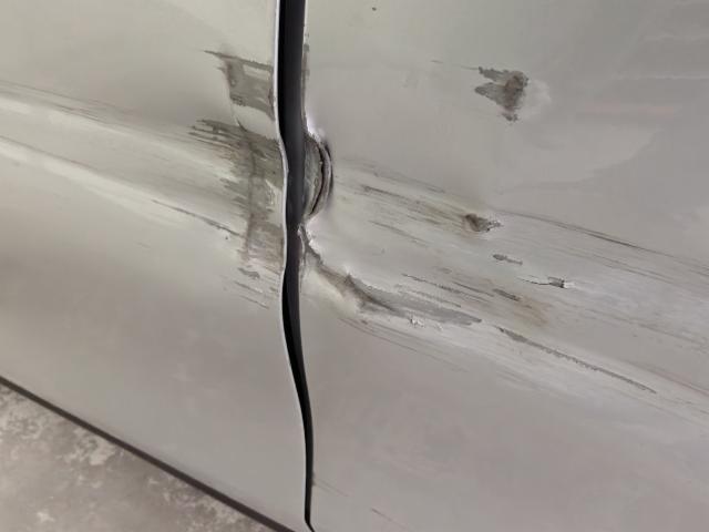Linke Seite beschädigt. Tür vorne links ist eingedrückt. Tür hinten links ist eingedrückt.