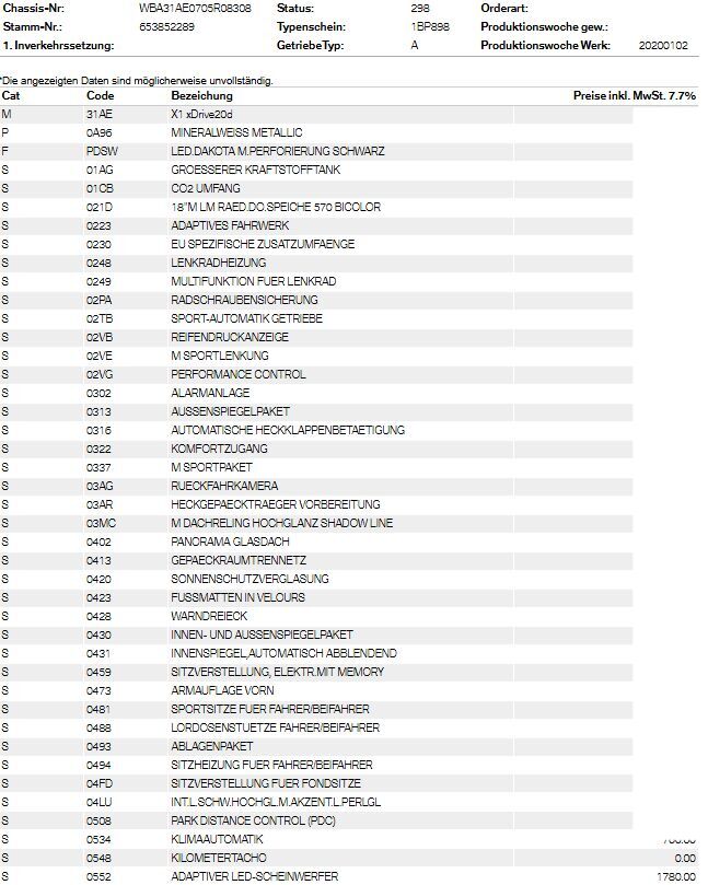 Keine technische Prüfung (Werkstatttest) vorgenommenDiverse Schäden an Karosserie/Lack.8-fach bereift.Fahrzeug ab Platz, ohne Garantie und Aufbereitung.Keine Gewähr auf die Angaben der Sonder- und Serienausstattung / keine mechanische Prüfung. Fahrzeug wurde unzerlegt expertisiert / keine Haftung für allfällige, nach Demontage bekanntwerdenden Mängel. Fahrzeugbereifung und Ausstattung gemäss Fotos / Fahrzeugkauf auf eigenes Risiko ab Platz ohne Nachwährschaft.- Div. Kratzer und Dellen- 18 Zoll Sommerräder- Neupreis von CHF 69'270.-