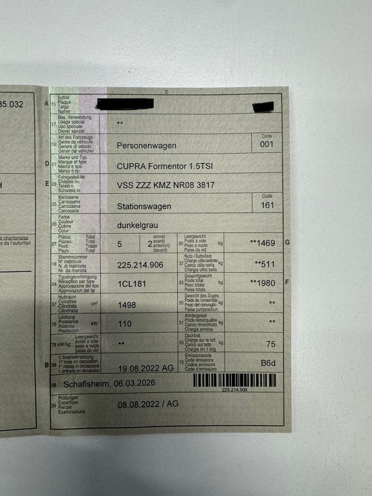 Keine technische Prüfung (Werkstatttest) vorgenommenFahrzeug ab Platz, ohne Garantie und Aufbereitung.DPF/FAP Filter nicht kontrolliertKeine Gewähr auf die Angaben der Sonder- und Serienausstattung / keine mechanische Prüfung. Fahrzeug wurde unzerlegt expertisiert / keine Haftung für allfällige, nach Demontage bekanntwerdenden Mängel. Fahrzeugbereifung und Ausstattung gemäss Fotos / Fahrzeugkauf auf eigenes Risiko ab Platz ohne Nachwährschaft.- Drei Felgen sind verkratzt- Leichte Kratzer am vorderen rechten Kotflügel- Zwei kleine Steinschlag am Stossstange unten rechts- 4 Sommerreifen vorhanden