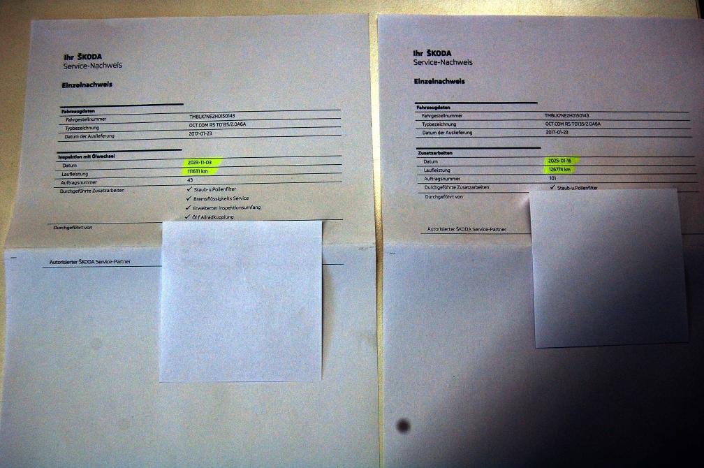Es wurde ein Eintauschtest durchgeführt. Nachfolgend die Mängel / die zu erledigende Arbeiten: - Service ist fällig - DSG-Oilwechsel fällig - Motor unten ölig (siehe Fotos) -2x Winterreifen zu ersetzen - Kratzer / Beule Radlauf HR (siehe Foto) - Beule Radlauf HL (siehe Foto) - Innenraum ist sauber und gepflegt -> Geschmack von Hund aktuell noch riechbar