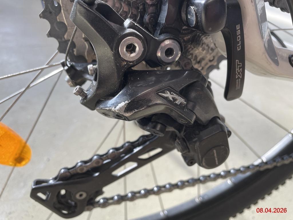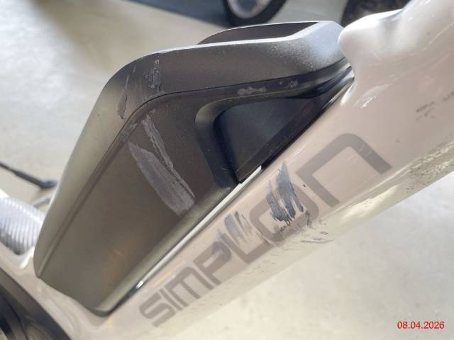 Gabel vorne Kratzer, div. Lenkeranbauteile rechts zerkratzt, Rahmen Kratzer, Batterie Kratzer (Aus-/Einbau der Batterie geht streng -> Aufnahme verformt), Pedalarm rechts verformt und Pedale zerkratzt (Risiko Lager Motor), Kettenspanner zerkratzt, Felge hinten verbogen, Gepäckträger zerkratzt