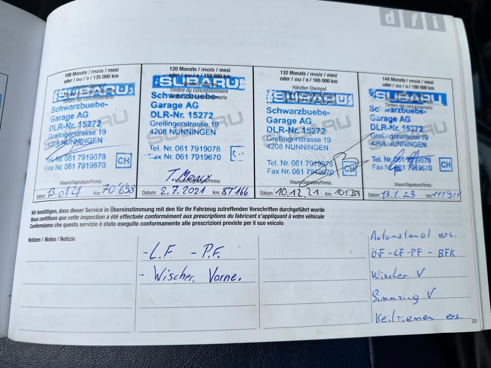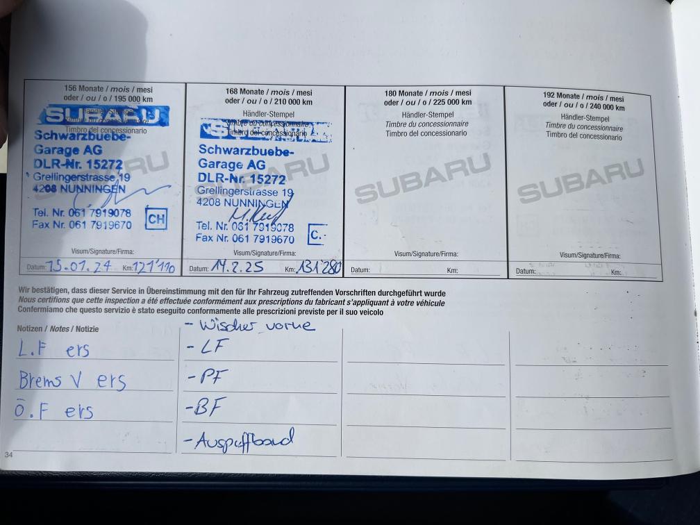 Gepflegtes Fahrzeug, Service immer bei Subaru Garage Kein Werkstattest durchgeführt Preisvorstellung Kunde. 14'000.-