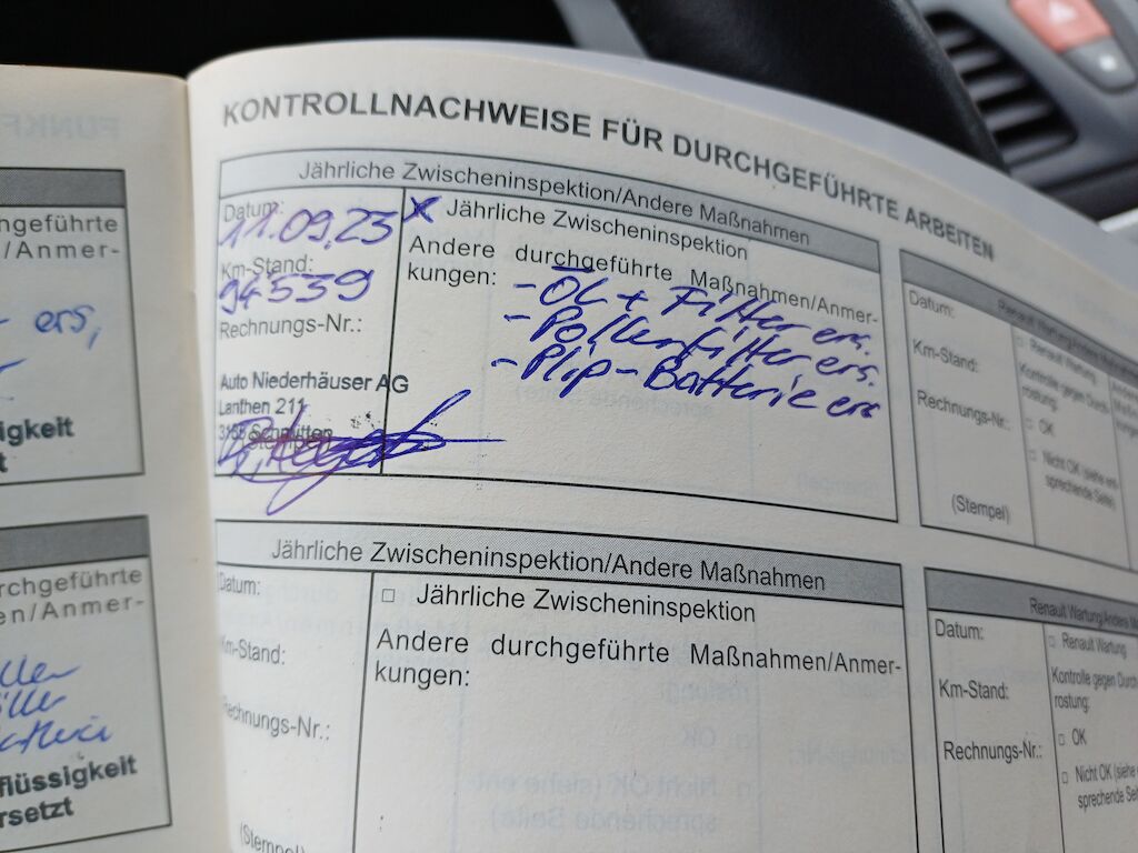 Flecken im Innenraum, Luftauslass Fahrer links angeklebt, Radkappen angefahren, Sicherheitsgurt Fahrerseite unten leicht ausgefranst, letzter Service 2023, Fahrzeug ab Platz, ohne Garantie und Aufbereitung. Diverse Schäden an Karosserie/Lack. Keine technische Prüfung (Werkstatttest) vorgenommen.Schaden Stossfänger vorn