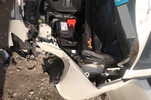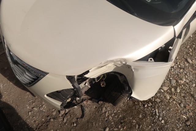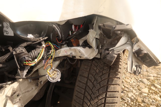 Frontscheinwerfer beschädigt. Es besteht die Gefahr, dass der vordere Längsträger beschädigt wird.