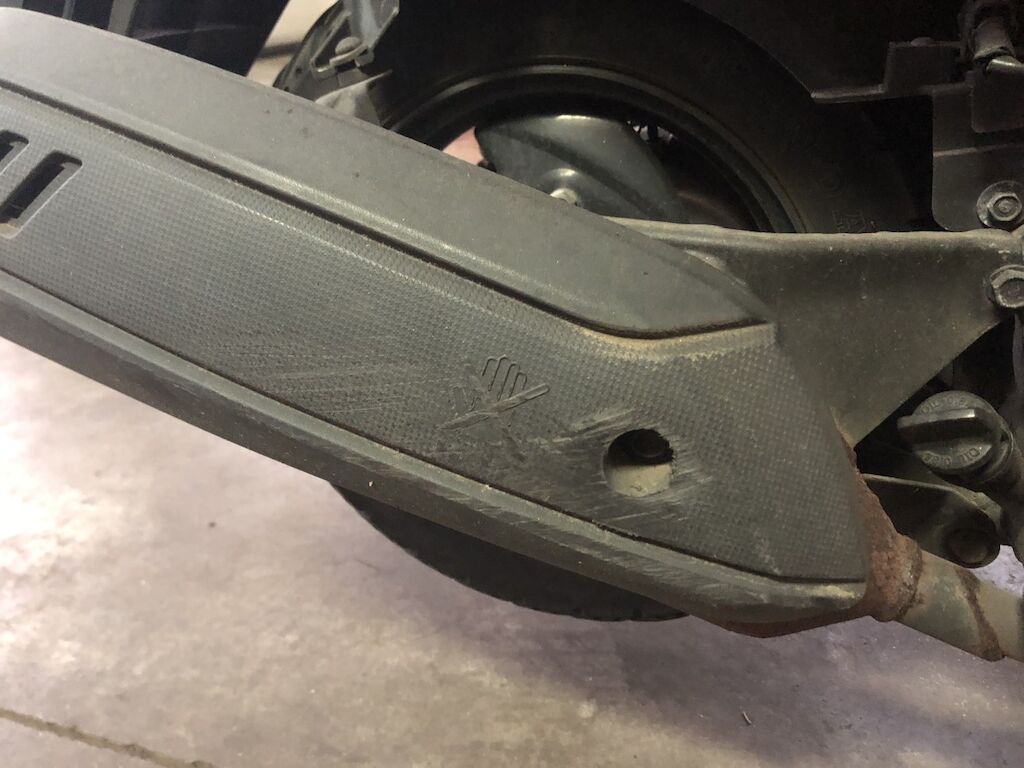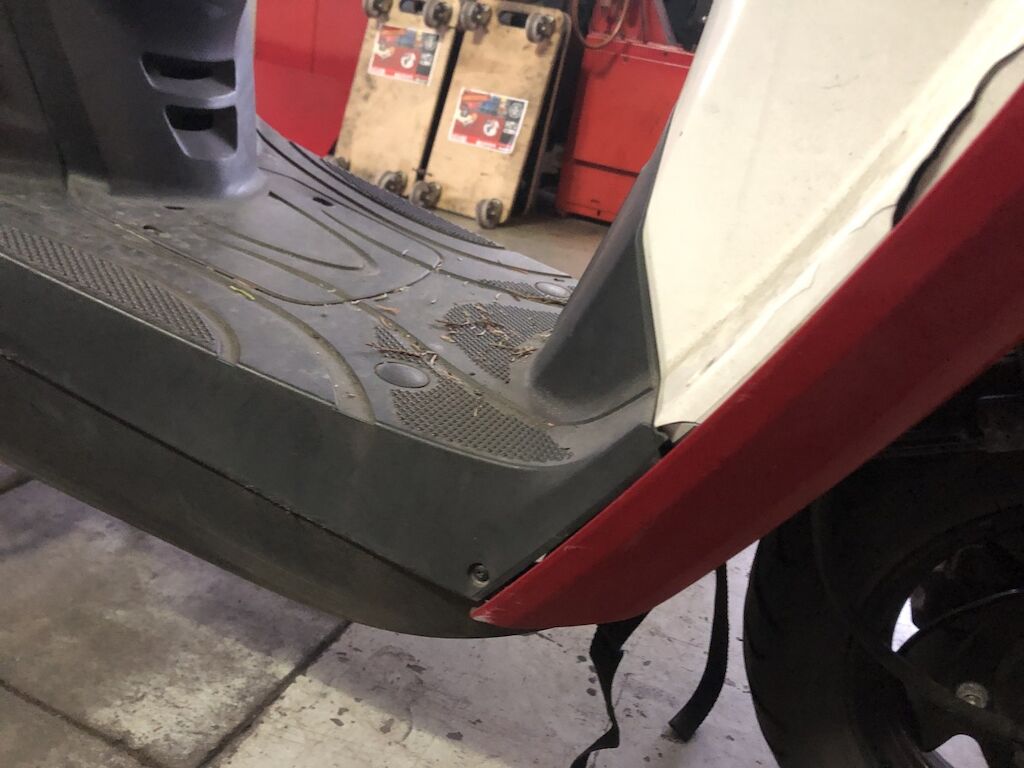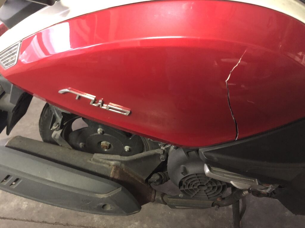 Danno da collisione su fianco dx. Lacerato carena post. dx, carena frontale, parafango , pedana e riv. interno ant.. Protezione calore scarico. Motor Getriebe Vorderachse Hinterachse Airbags ausgelöst: 0 unbekannt ( Abfallcode 16.01.04ak )