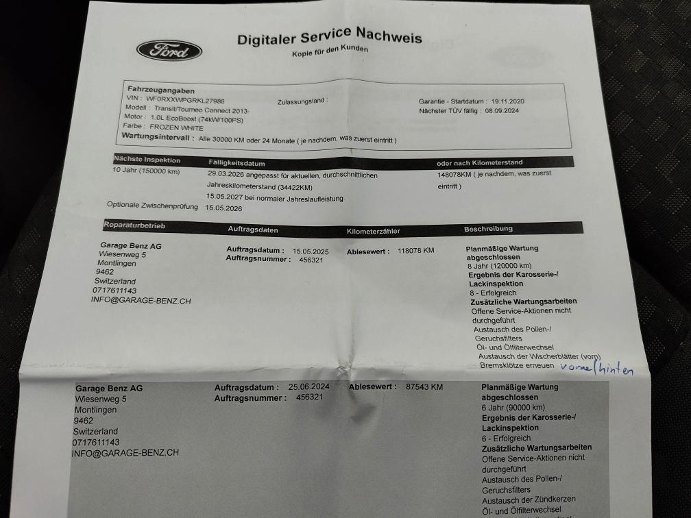 Es wurde kein Werkstatttest durchgeführt. Der Bus wird ab Platz und ohne Garantie verkauft. Zustand gemäss Bildern; weist innen wie aussen Gebrauchsspuren auf, fährt sich jedoch einwandfrei. Der Würth-Innenausbau inkl. Dachträger (Neuwert ca. CHF 3'000.–) verbleibt im Fahrzeug. Jegliche Nachverhandlungen sind ausgeschlossen.