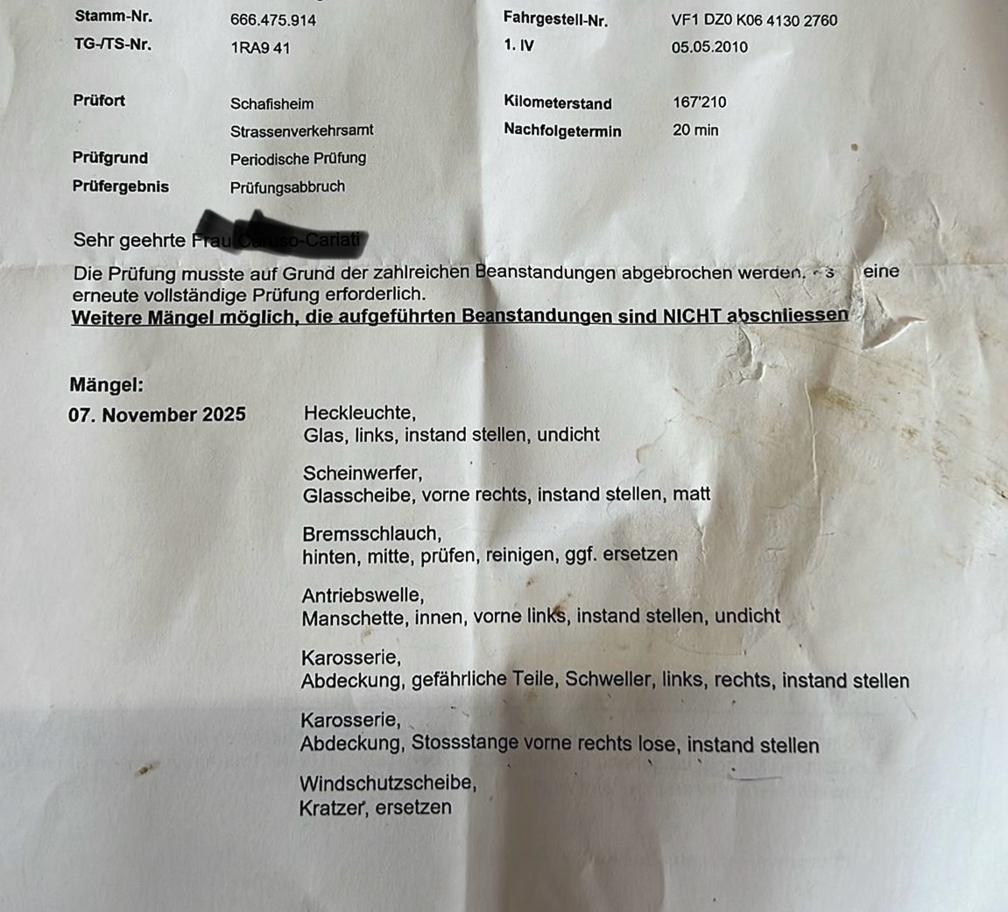 Diverse MFK Mängeln (siehe Beanstandung-Foto) Ab Platz ohne Garantie