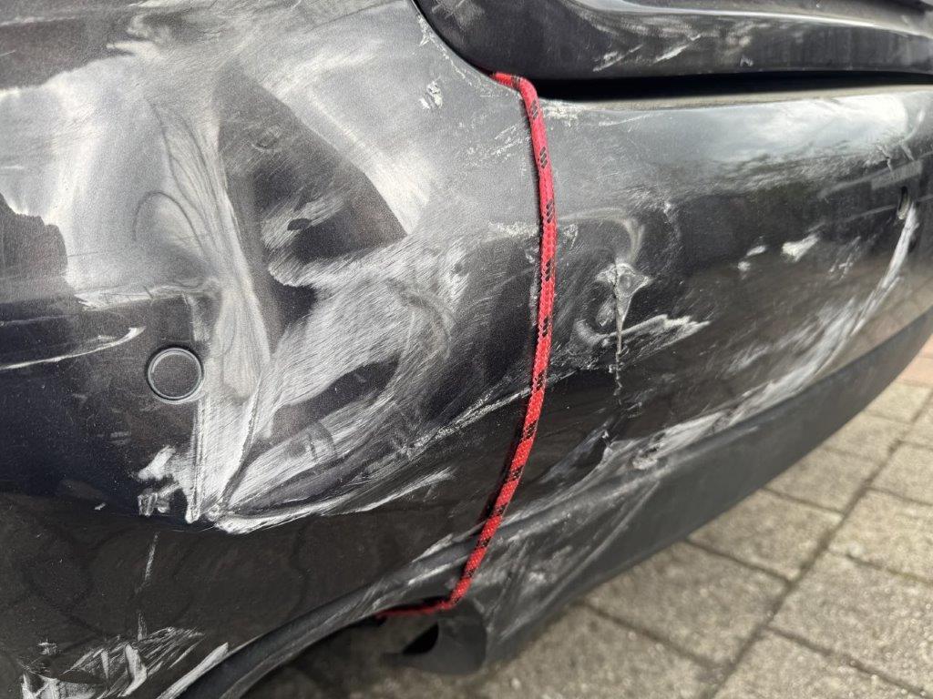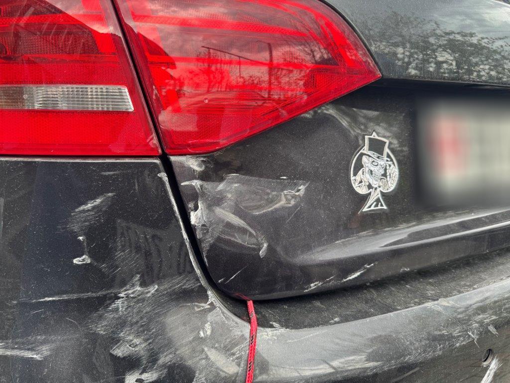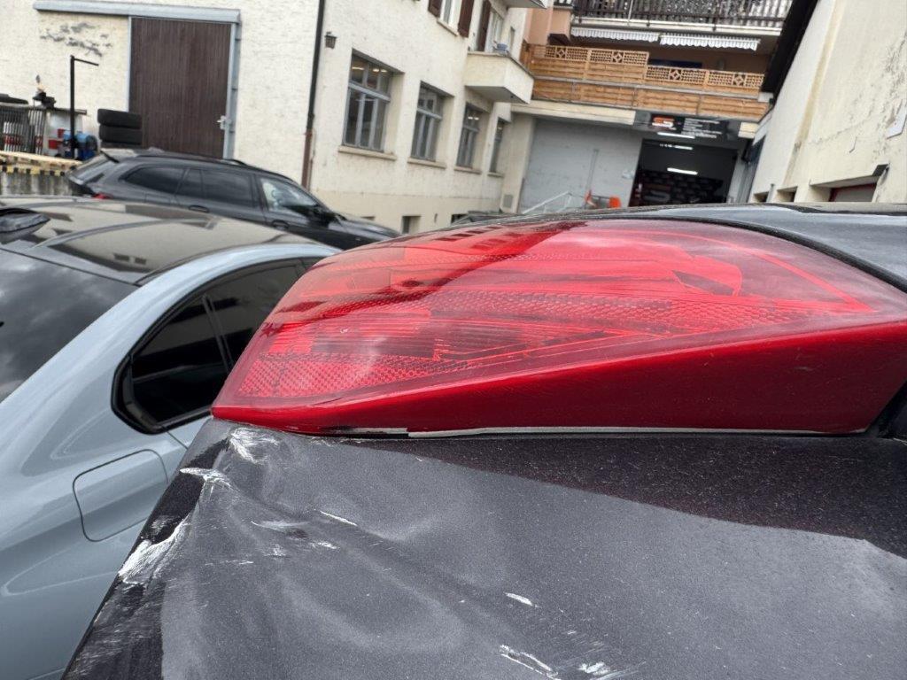 Stossstange hinten und deren Halter zerbrochen. Heckklappe gestaucht. Heckleuchte links innen zerbrochen. Heckblech eingedellt und verbogen. Endschalldämpfer und Auspuffanlage verbogen und gestaucht. Diverse Carrosserieteile leicht beschädigt.