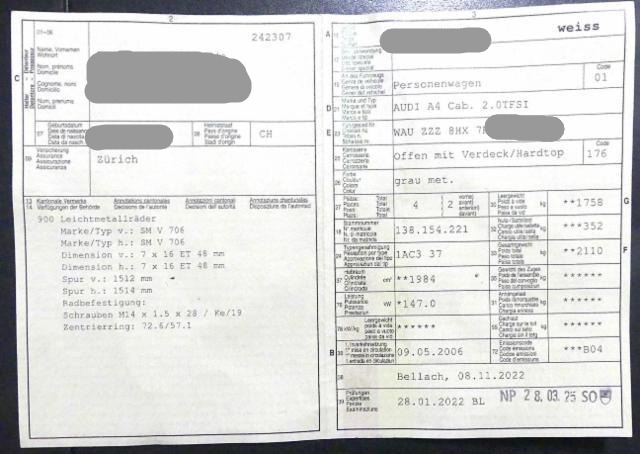 Fahrzeugdokumente vorhanden.