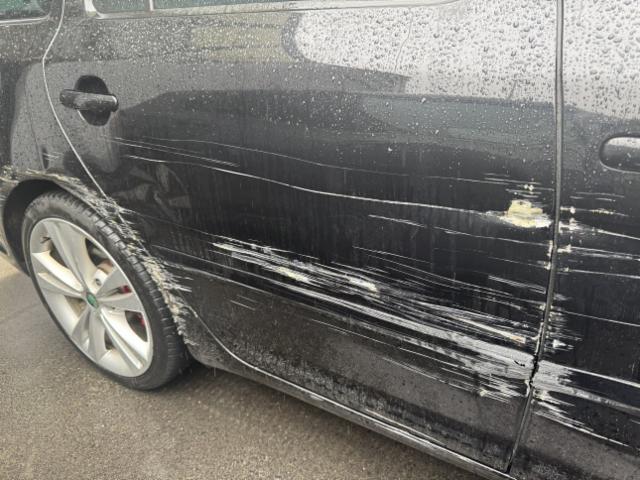 Rechte Seite beschädigt. Schweller rechts ist eingedrückt. Tür vorne rechts ist eingedrückt. Tür hinten rechts ist eingedrückt.