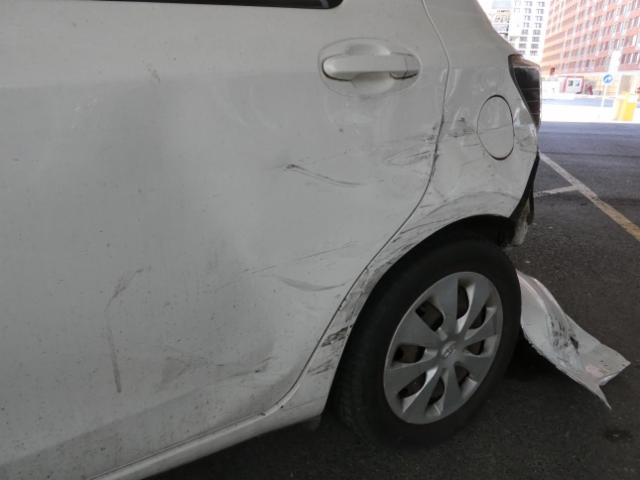 Linke Seite beschädigt. Tür hinten links ist eingedrückt.
