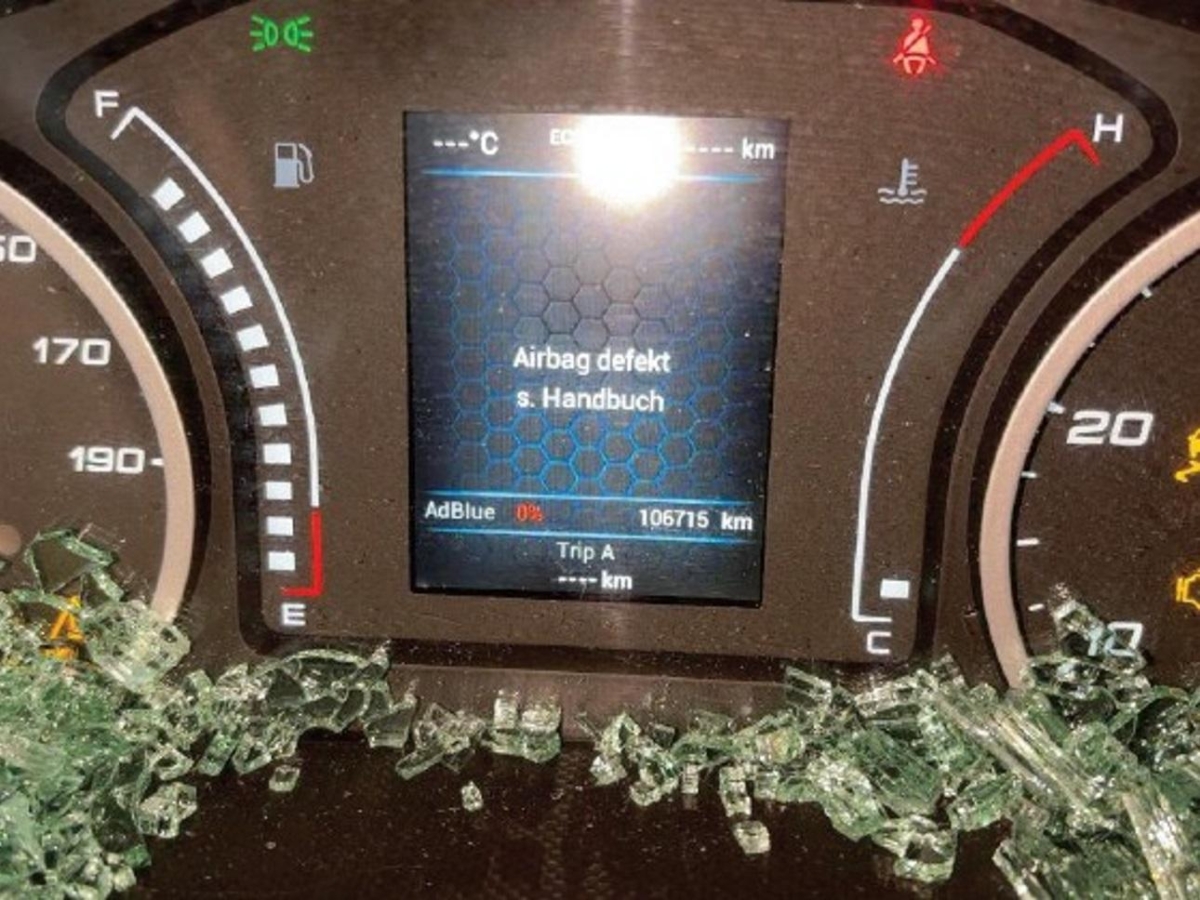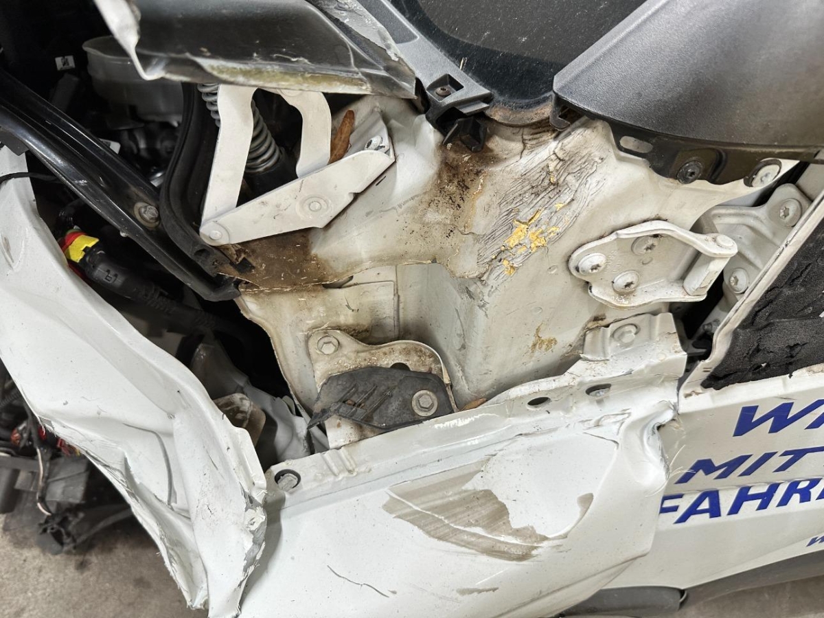 A-Säule, Airbag ausgelöst, Auspuffkollektor, Aussenspiegel links, B-Säule, Federbein vorne links, Front links, Frontblech, Getriebe, Kabelstrang, Klimakühler, Kotflügel links, Kotflügel rechts, Kühler, Kühlgitter, Ladeluftkühler, Lenkung, Motorträger, Rad vorne links, Radaufhängung vorne links, Radhaus vorne links, Scheinwerfer links, Schlossträger, Türe vorne links, Vorderachse
