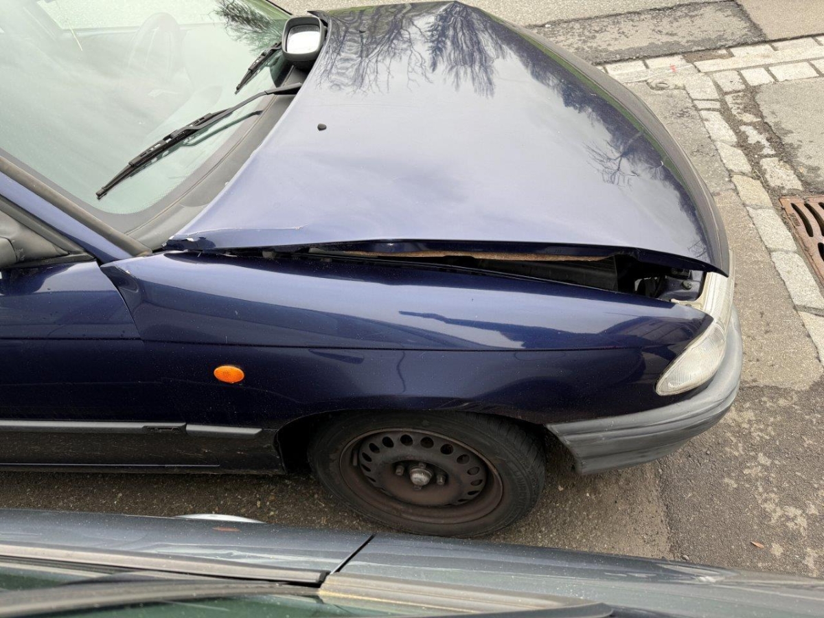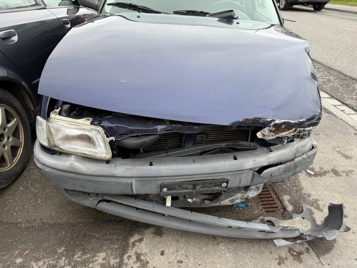 Anprall vorne links: Dabei wurde die Motorhaube mit Anbauteile, beide Scheinwerfer, beide Kotflügel, die Stossstange, der Kühlergrill, der Schlossträger, alle Kühler mit Lüfter und Lüfterzarge, das Radhaus, die Radaufhängung mit Lenkung, die Felge mit Reifen, beide Längsträger, sowie diverse Anbauteile beschädigt. Der Motor und die Front wurden nach rechts verschoben. Motor startet nicht, Ursache unbekannt.