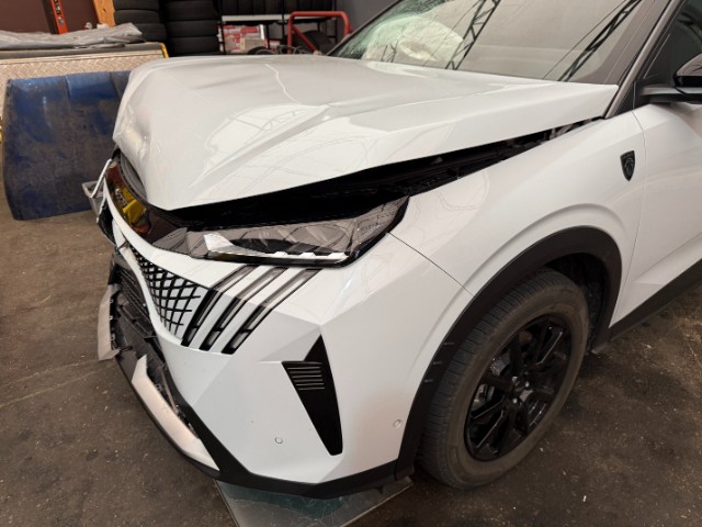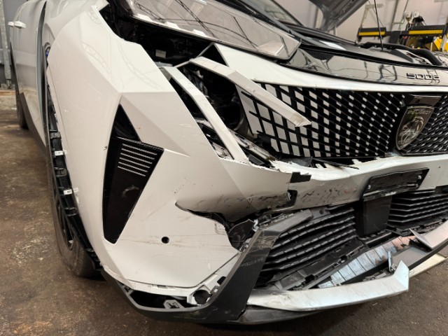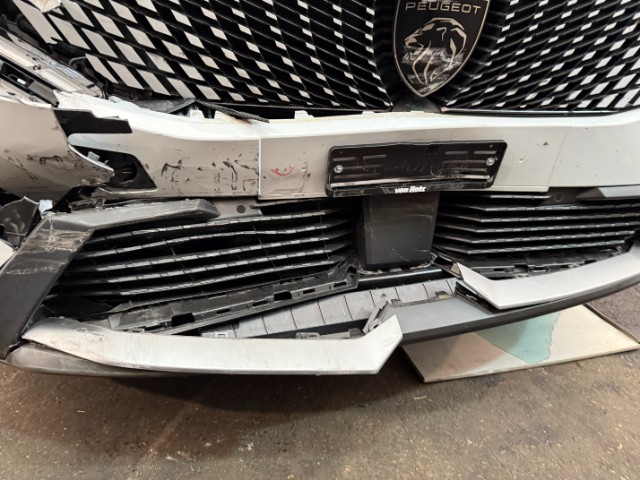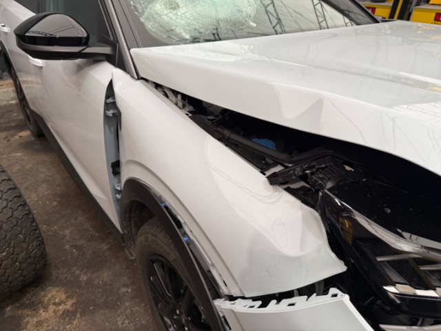 Fussgängerschutz ausgelöst. Front eingedrückt. Front links eingedrückt. Front rechts eingedrückt. Frontblech/Maskenblech eingedrückt. Radhaus vorne rechts eingedrückt / gestaucht. Längsträger vorne rechts gestaucht.