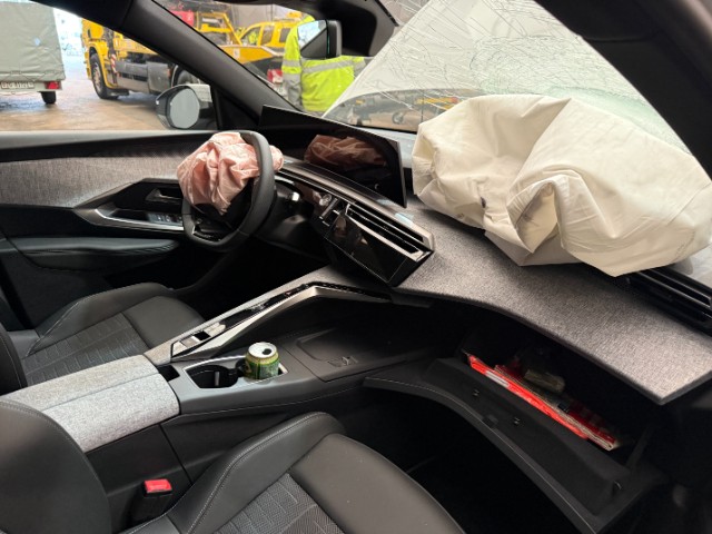 Armaturenbrett ist beschädigt. Gurtstraffer ausgelöst. Gurtstraffer vorne ausgelöst. Gurtstraffer hinten ausgelöst.