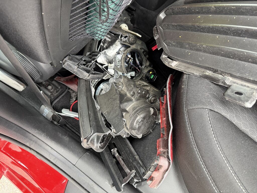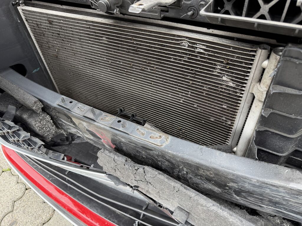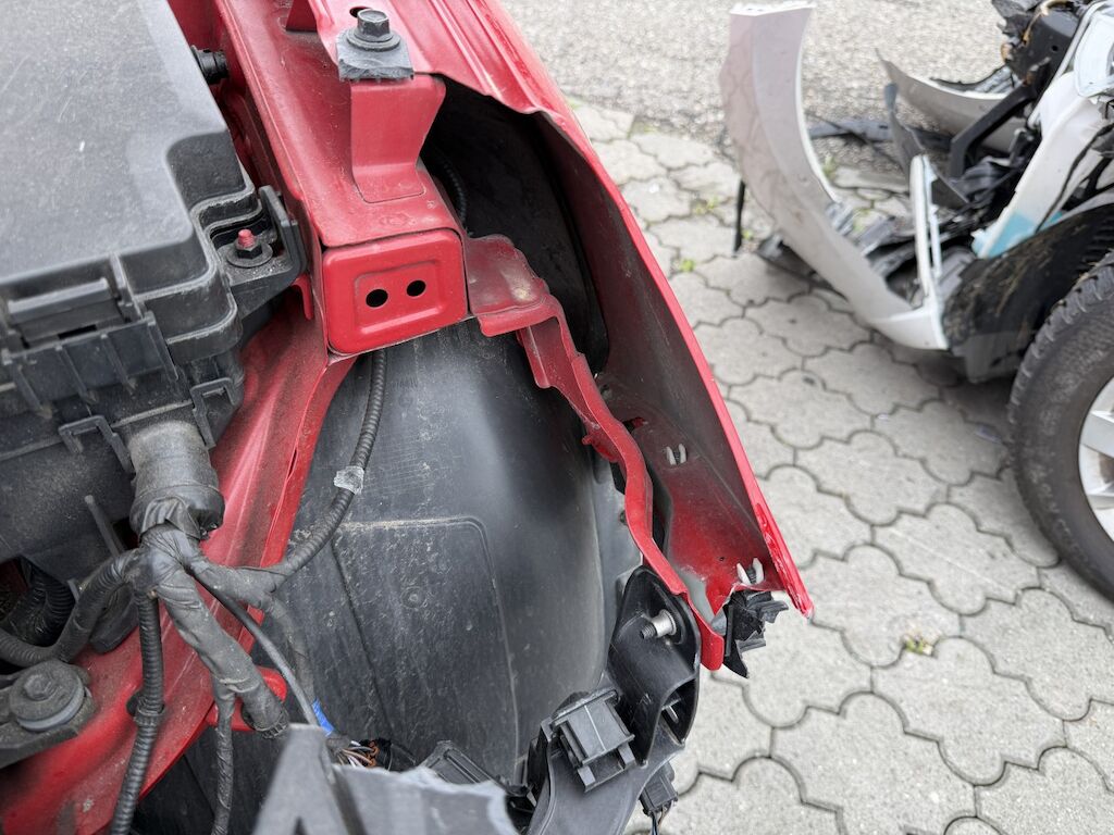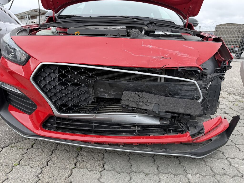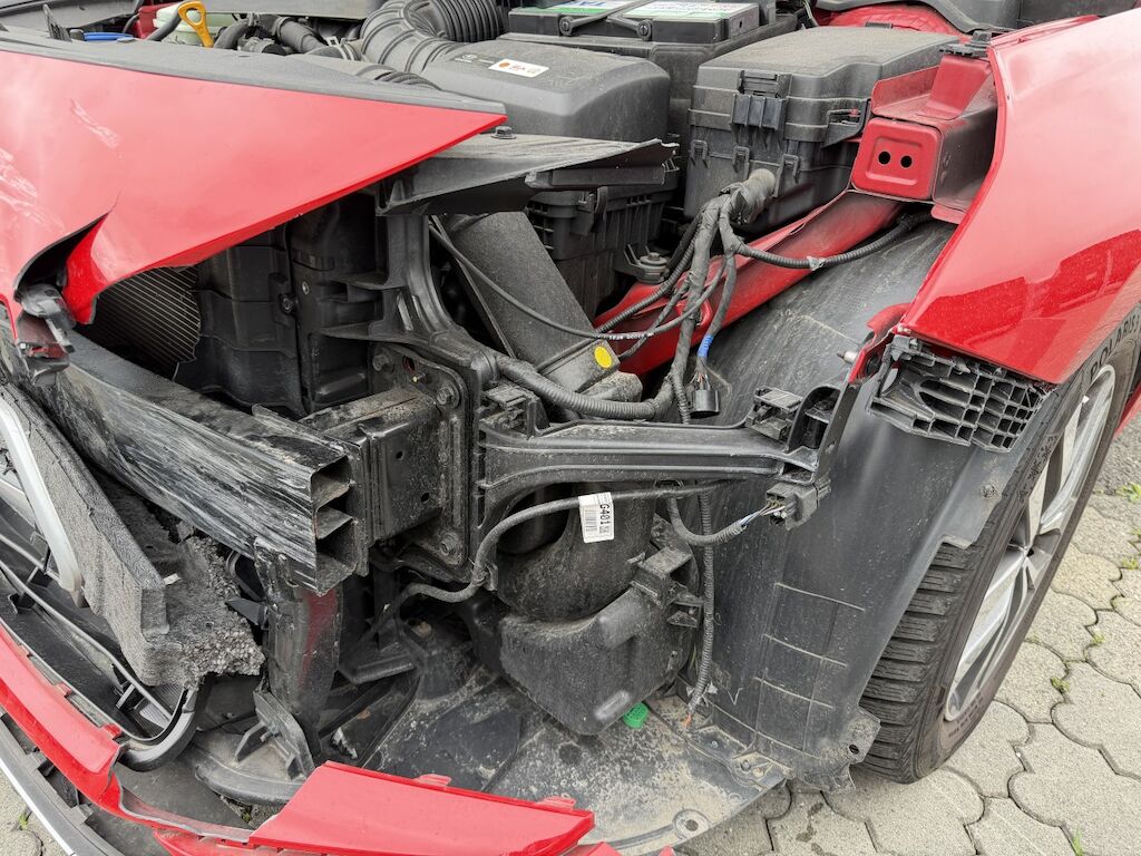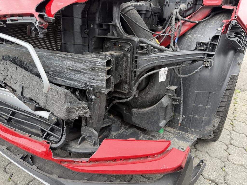 Frontschaden links: Motor läuft, Fz ist nicht fahrbar. Kühlerpaket eingedrückt, Kühlergrill inkl. Zierleisten beschädigt, Scheinwerfer defekt, Tagfahrleuchte inkl. Gitter gebrochen, STS inkl. Spoiler defekt, Kabelstrang ausgerissen, Motorhaube deformiert, Kotflügel deformiert, Kotflügel vr verschoben, Motorenabdeckung beschädigt, Dachrahmen l&r verkratzt, Aufzählung nicht abschliessend. Motor Getriebe Vorderachse Hinterachse Airbags ausgelöst: 0 unbekannt ( Abfallcode 16.01.04ak )