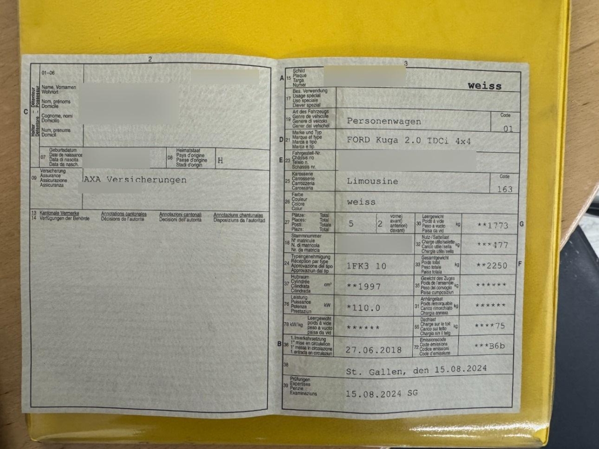 Auspuffanlage mit 2 Endrohren, Wegfahrsperre elektronisch, Beide Make up-Spiegel beleuchtet, Klima: 2-Zonen-Klimaautomatik, ISOFIX Kindersitzvorrichtung, Sitze: Kopfstützen vorne höhenverstellbar, Sitze: Fahrersitz höhenverstellbar, Wärmeschutzverglasung, Räder: Reifenreparatur-Set (Tire Fit), Lenkrad: Radiofernbedienung, Sitze: Rücksitzlehne geteilt abklappbar, Navigationssystem, Radio/CD/MP3, DAB+, 6 LS, Fernb., mit Bluetooth, Notrufass., AppLink/ Apple CarPlay/ Android Auto, SYNC 3, TMC, 2xUSB, Kopfstützen hinten höhenverstellbar, Cupholder vorne, Airbag: Seitenairbag für Fahrer und Beifahrer, Kartentaschen an den Rückenlehnen, Licht: Drittes Bremslicht, Assist: Berganfahrhilfe (Hill Launch Assist), Bodenablagefach hinten, Reifendruck-Kontrollanzeige, Stossstangen, Aussenspiegel und Türgriff in Wagenfarbe, Getriebe: 6-Gang-Getriebe, Lenkrad und Schalthebelgriff in Leder, Laderaumabdeckung, Gurtstraffer vorne, Sitze: Einstellbare Lendenwirbelstütze für den Fahrer und Beifahrer, Sportlederlenkrad mit Audiobedienung, Premium-Mittelkonsole, Licht: Halogenscheinwerfer, Elektrische Fensterheber vorne und hinten mit Komfortbetätigung und Einklemmschutz, Airbag: Fahrer und Beifahrer, Sitze: Sportsitze vorne, Dachhimmel, Zentralverriegelung mit Fernbedienung und Globalschliessung, Teppichfussmatten, ABS und TCS, Assist: Park-Assistent (Einparkfunktion, Ausparkfunktion, Parkdistanzsensoren vorne und hinten), Bodykit, Licht: Licht- und Regensensor, 3-Punkt-Sicherheitsgurte auf allen Plätzen, Dachreling schwarz, Lenkrad: Lenkrad längs- und höhenverstellbar, Airbag: Window-Kopfairbags, Stopp-/Start-System, Allradantrieb permanent, Innenspiegel automatisch abblendbar, Gurtkontrolle, Polster: Stoff-/Leder-Ausstattung, Airbag: Knie-Airbag für Fahrer, Fussraumbeleuchtung vorne, Heckscheiben-Wisch-/Waschanlage mit, Zigarettenanzünder, Fahrer-Informationssystem mit Farbdisplay, Elektronische Parkbremse, Aussenspiegel rechts und links beheizbar und elektrisch verstell- / einklappbar mit Einstiegsbeleuchtung, FordPower KeyFree Startfunktion, Einstiegsschienen vorne, Licht: LED-Tagfahrlicht, Kühlergrill mit Designelementen, Servolenkung, Pedalerie mit Aluminiumauflage, Easy Fuel, Licht: Nebelscheinwerfer, Leichtmetallräder im 5x2-Speichen-Design 18J, Partikelfilter und Oxydationskatalysator, Assist: Tempomat mit Geschwindigkeitsbegrenzer, Steckdose 12V, Klima: Pollenfilter (Staubfilter), Kartentasche an der Rückenlehne, Scheibenwischer vorne mit Intervall, Bordcomputer, Vordersitze manuell neigungsverstellbar, Sitze: Mittelarmlehne hinten mit 2 Getränkehaltern, Licht: Nebelschlussleuchte