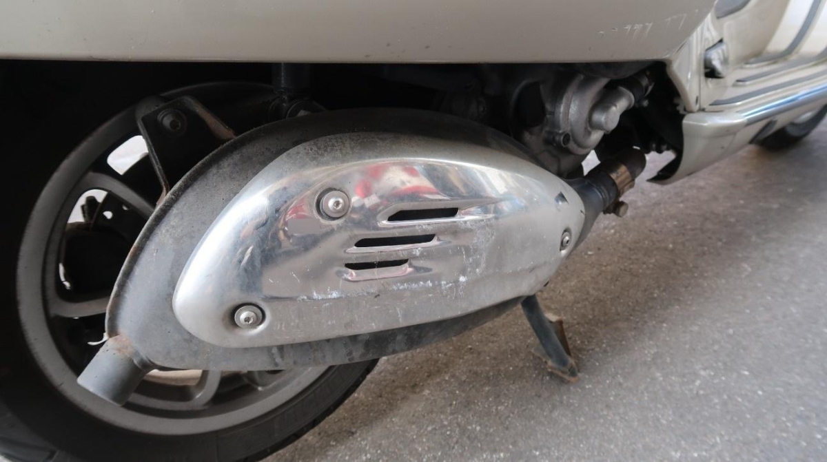 Auspufftopf, Gabelholm, Griff rechts, Lenker, Rad vorne, Schutzblech vorne, Verschalungen rechts, Verschalungen vorne