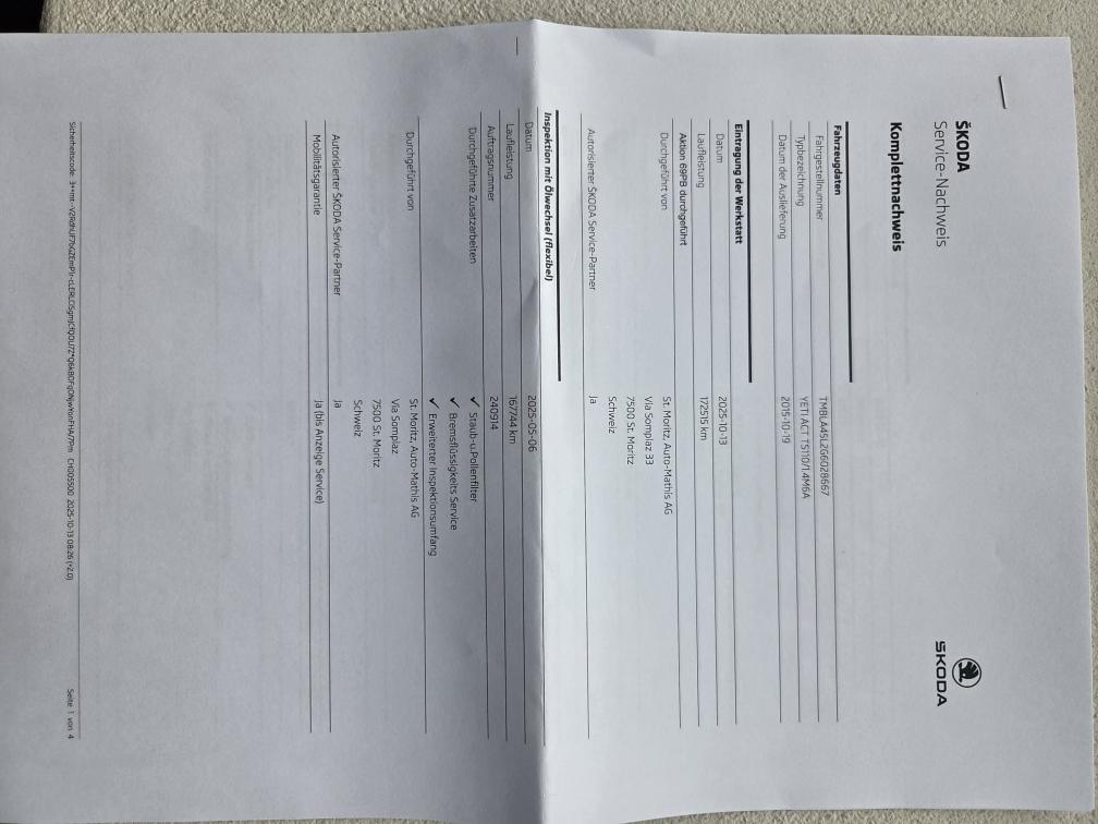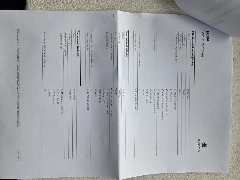 Es wurde kein Werkstatt-Check durchgeführt, da das Fahrzeug die MFK-Prüfung nicht bestanden hat. Anbei finden Sie den Prüfbericht des Strassenverkehrsamtes. Folgende Mängel wurden festgestellt: Die Bremsen vorne und hinten müssen ersetzt werden, der hintere Querlenker ist durchgerostet und muss ausgetauscht werden, das Glas des Blinkers vorne rechts ist zu ersetzen und der Kotflügel hinten links weist Rostschäden auf, die repariert werden müssen. Bezüglich weiterer Gebrauchsspuren an der Karosserie verweise ich auf die Fotos.