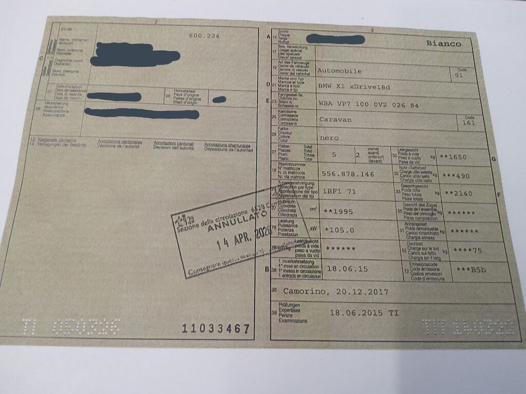 Non è stata effettuata alcuna ispezione tecnica (prova in officina) Piccoli segni di usura carrozzeria/verniciatura Bollo cofano motore Specchio SX picchiato leggermente sulla cornice Piccolo danno paraurti anteriore DX Cerchi ruota rovinati sul bordo Collaudo con firma senza riparazione Motor Getriebe Vorderachse Hinterachse Airbags ausgelöst: 0 Nein ( Abfallcode 16.01.04ak )