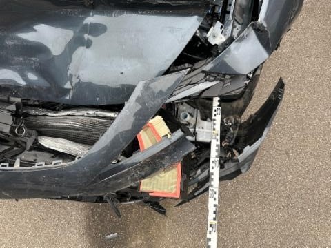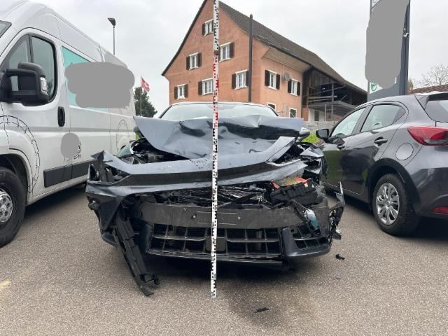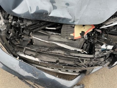 Fussgängerschutz ausgelöst. Front eingedrückt. Frontblech/Maskenblech eingedrückt. Radhaus vorne rechts und links eingedrückt. Längsträger vorne rechts und links gestaucht. Fahrzeugvorbau verschoben.