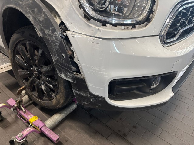 Aufhängungsteile vorne rechts beschädigt. Risiko Lenkung.