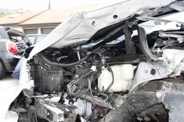 Risiko Motor. Alle Kühler vorne sind eingedrückt. Motorstörung: Warnleuchte aktiv