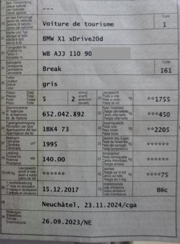 Klimaanlage inkl. Mikrofilter Fahrer und Beifahrer-Airbag Seitenairbag für Fahrer und Beifahrer Reifendruck-Kontrollsystem RDC Elektrische Fensterheber Aussenspiegel elektrisch verstellbar und heizbar Armauflage vorn Regensensor Nebelscheinwerfer vorne Dynamische Stabilitäts-Control DSC Antiblockiersystem ABS Servotronic Pack Ablage Kindersitzbefestigung Isofix Bordcomputer Multifunktions-Lenkrad Kopfairbags vorne + hinten Dynamische Traktions-Control DTC Dieselpartikelfilter Lenksäule mit Höhen- und Längseinstellung Digital audio DAB-Tuner Auto Start Stopp Funktion Rücksitzlehne geteilt umklappbar 40/20/40 Dachreling schwarz Details siehe gültige Preisliste des Importeurs Freisprecheinrichtung mit USB-Schnittstelle Keine Gewähr auf die Angaben der Serienausstattungen ConnectedDrive Services Interieurleisten oxidsilber matt BMW Service Plus 10 Jahre/ 100'000 km Leichtmetallräder V-Speiche 560 Aufmerksamkeitsassistent