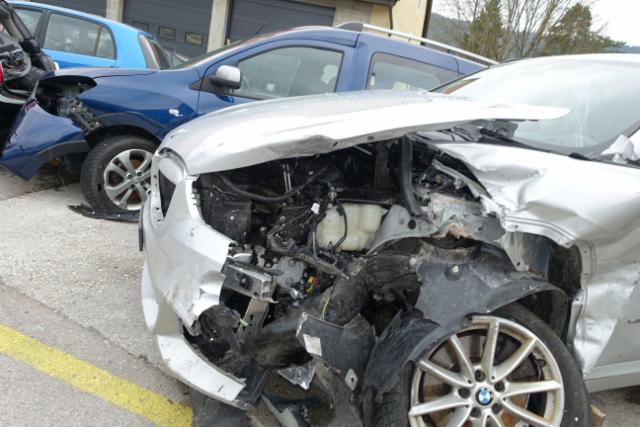 Front links eingedrückt. Längsträger vorne links gestaucht.
