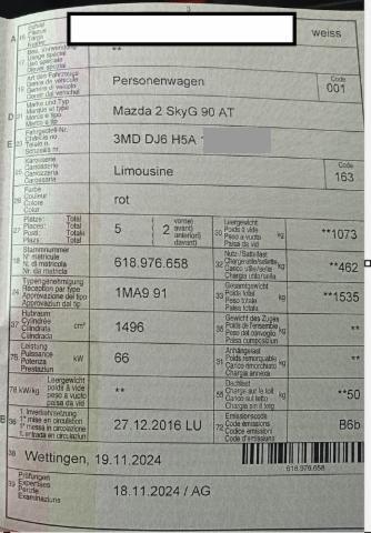 Airbag Fahrer und Beifahrerseite Elektrische Fensterheber vorne + hinten Zentralverriegelung mit Fernbedienung Innenspiegel automatisch abblendbar Multifunktionslenkrad Radio Lederlenkrad mit Lederschaltknauf Leichtmetallfelgen 16" Aussenspiegel elektrisch verstellbar/ heizbar und anklappbar Lenkrad beheizbar Dunkelgetönte Scheiben hinten Vorhangairbags vorne + hinten Rückfahrkamera Seitenairbags vorne Elektronische Fahrdynamik-Regelung Bluetooth Interface fürs Mobiltelefon Regen- und Lichtsensor Touchscreen-Farbbildschirm Lichtassistentsystem (Coming- und Leaving Home Funktion) Heizbare Vordersitze Rücksitzlehnen getrennt abklappbar 60:40 Kindersitzverankerung ISOFIX hinten Keyless Entry System Berganfahrhilfe Fahrersitz höhenverstellbar Einparkhilfe hinten DSC Dynamische Stabilitäts- und Traktionskontrolle TCS Klimaautomatik Toter-Winkel-Warnsystem Beifahrersitz höhenverstellbar Geschwindigkeitsregler und - begrenzer Anschluss USB und AUX Stop + Start System LED-Scheinwerfer LED Tagfahrlicht ABS und EBD Elektr. Bremskraftverteilung inkl. BA Spurwechselassistent Details siehe gültige Preisliste des Importeurs Keine Gewähr auf die Angaben der Serienausstattungen Aktiver Spurhalteassistent LKAS City Notbremsfunktion DAB+ Digital Audio Broadcast Garantie 6 Jahre/ 150'000 km Apple Car Play/ Android Auto Rückfahr-Querverkehrswarner Pack Convenience
