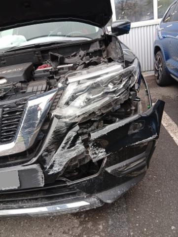 Front eingedrückt. Front links eingedrückt. Kotflügel vorne links eingedrückt. Motorhaube eingedrückt. Frontblech/Maskenblech eingedrückt. Radhaus vorne links eingedrückt / gestaucht. Längsträger vorne links gestaucht.
