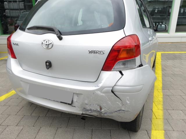 Stossstange hinten gebrochen, Stossstangenbalken hinten gestaucht, Rücklicht hinten rechts gebrochen, Seitenwand hinten rechts zerkratzt Vorschaden: Stossstange vorne gebrochen, Kotflügel vorne llinks verbeult, Seitenwand hinten links verbeult, Spiegelschale vorne rechts beschädig, Scweller rechts vorne eingedellt