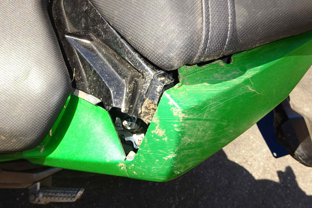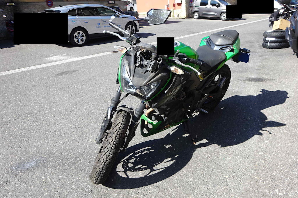 Guidon, rétro, réservoir, fourche, garde-boue, phare, carénage, séleécteur de vitesse et lévier endommagés Motor Getriebe Vorderachse Hinterachse Airbags ausgelöst: 0 unbekannt ( Abfallcode 16.01.04ak )