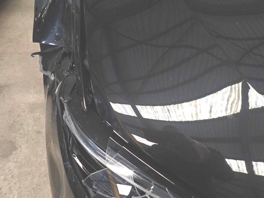 Stossfänger vorne, Scheinwerfer rechts, Kotflügel rechts und Motorhaube rechts eingedrückt; Felge, Reifen und Radaufhängung vorne rechts beschädigt; Reifen und Felge hinten rechts beschädigt; Türe vorne und hinten links Kratzer Motor Getriebe Vorderachse Hinterachse Airbags ausgelöst: 0 unbekannt ( Abfallcode 16.01.04ak )
