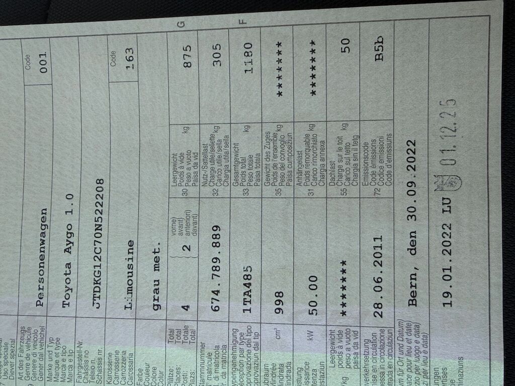 Das Fahrzeug wird vom Besitzer noch benutzt. Persönliche Gegenstände oder Ladegut im Fahrzeug werden entfernt. Div. Carrosserie Teile sind leicht beschädigt. Div. Roststellen am Fahrzeug. Nur ein Schlüssel vorhanden.