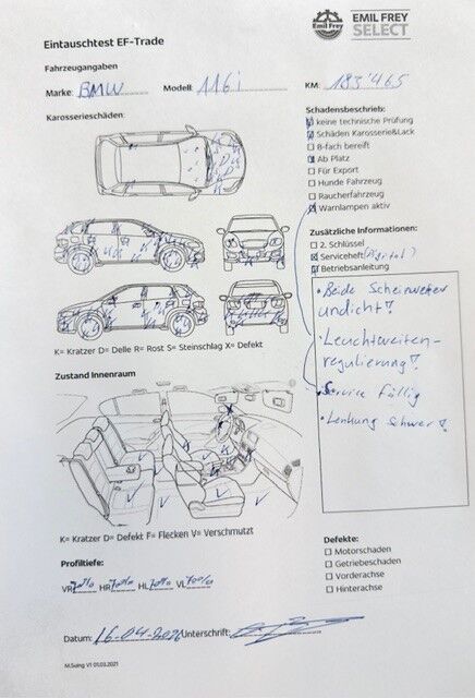 Keine technische Prüfung (Werkstatttest) vorgenommen Diverse Schäden an Karosserie/Lack. Fahrzeug ab Platz, ohne Garantie und Aufbereitung. Motor Getriebe Vorderachse Hinterachse Airbags ausgelöst: 0 unbekannt ( Abfallcode 16.01.04ak )