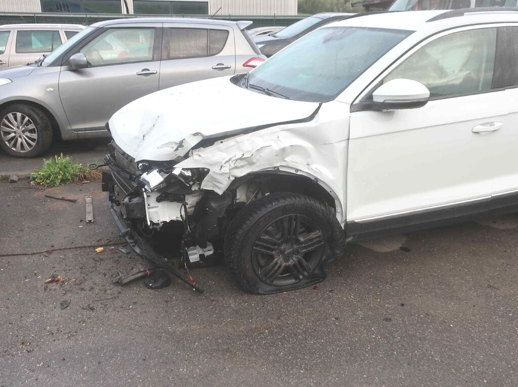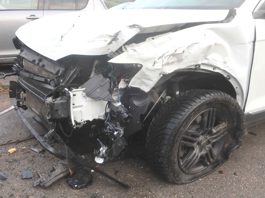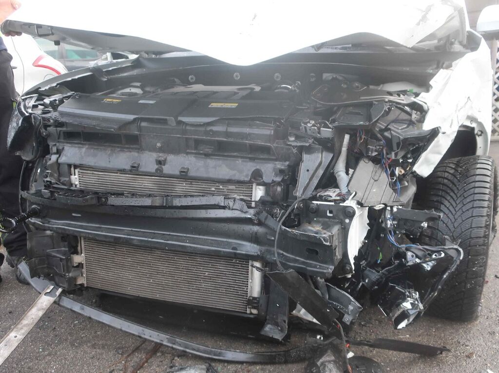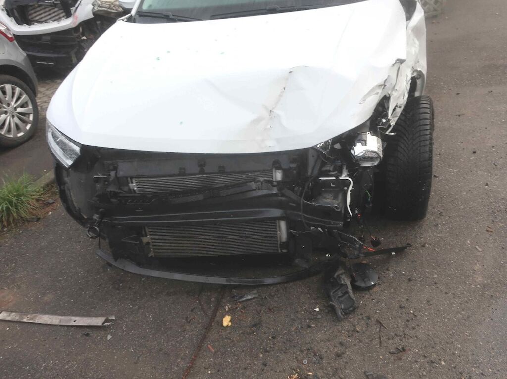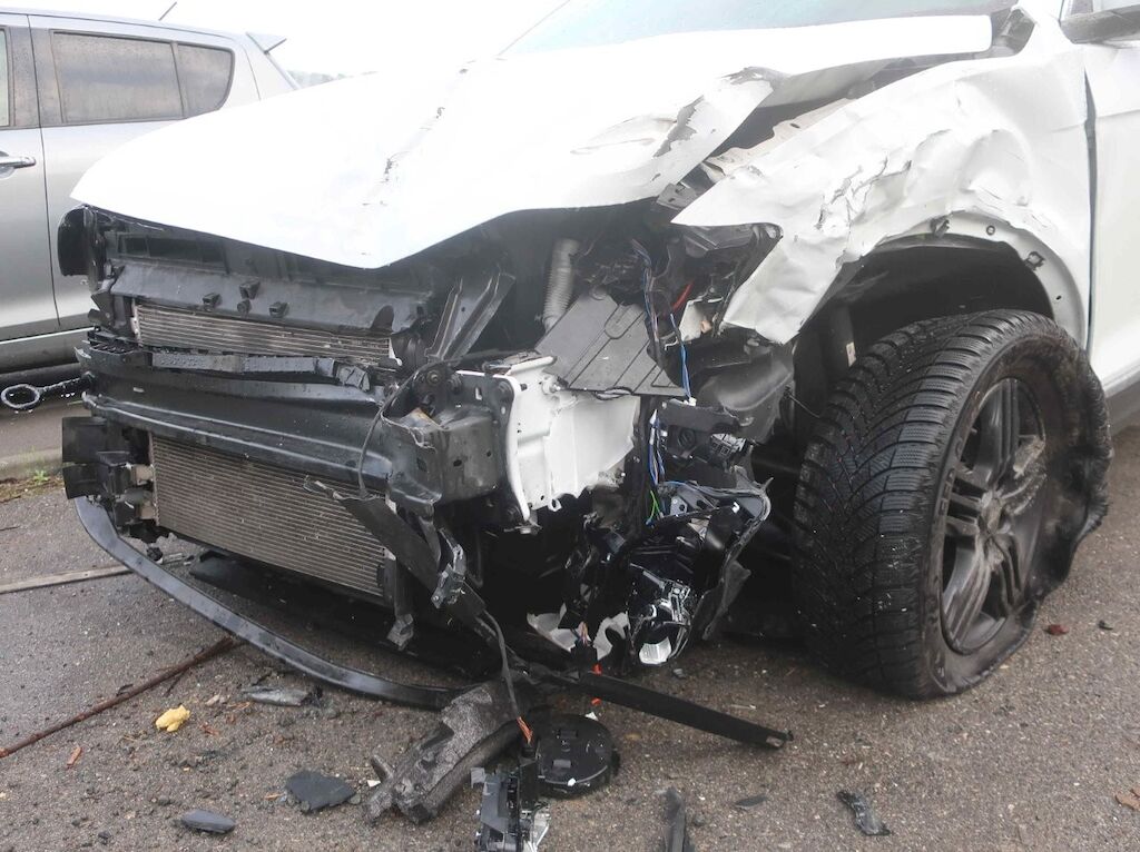 Toute la partie frontale, le train avant gauche et la porte avant droite sont endommagés. Les airbags frontaux et latéraux sont déployés. Motor Getriebe Vorderachse Hinterachse Airbags ausgelöst: 4 unbekannt ( Abfallcode 16.01.04ak )