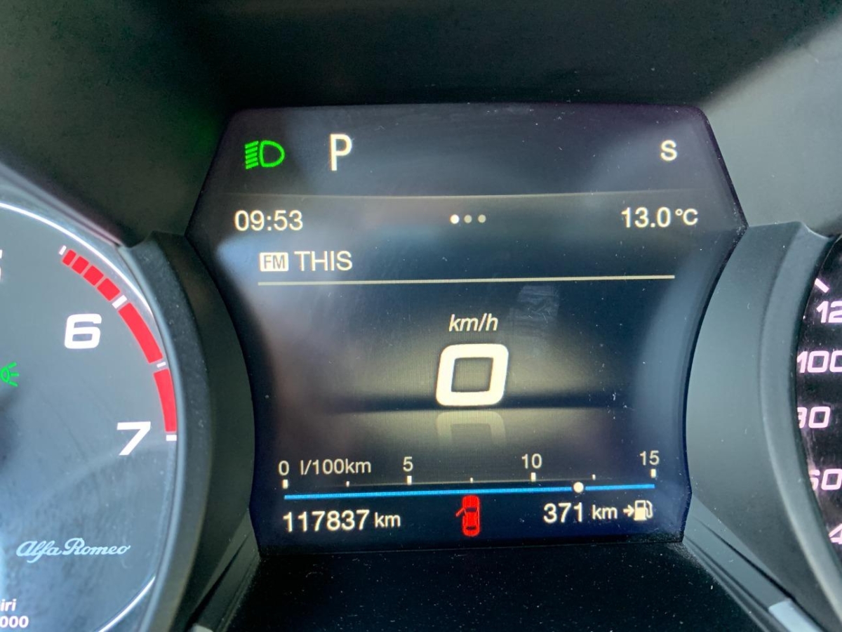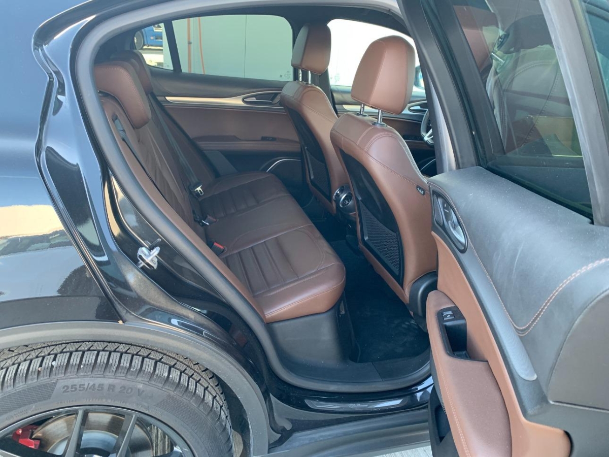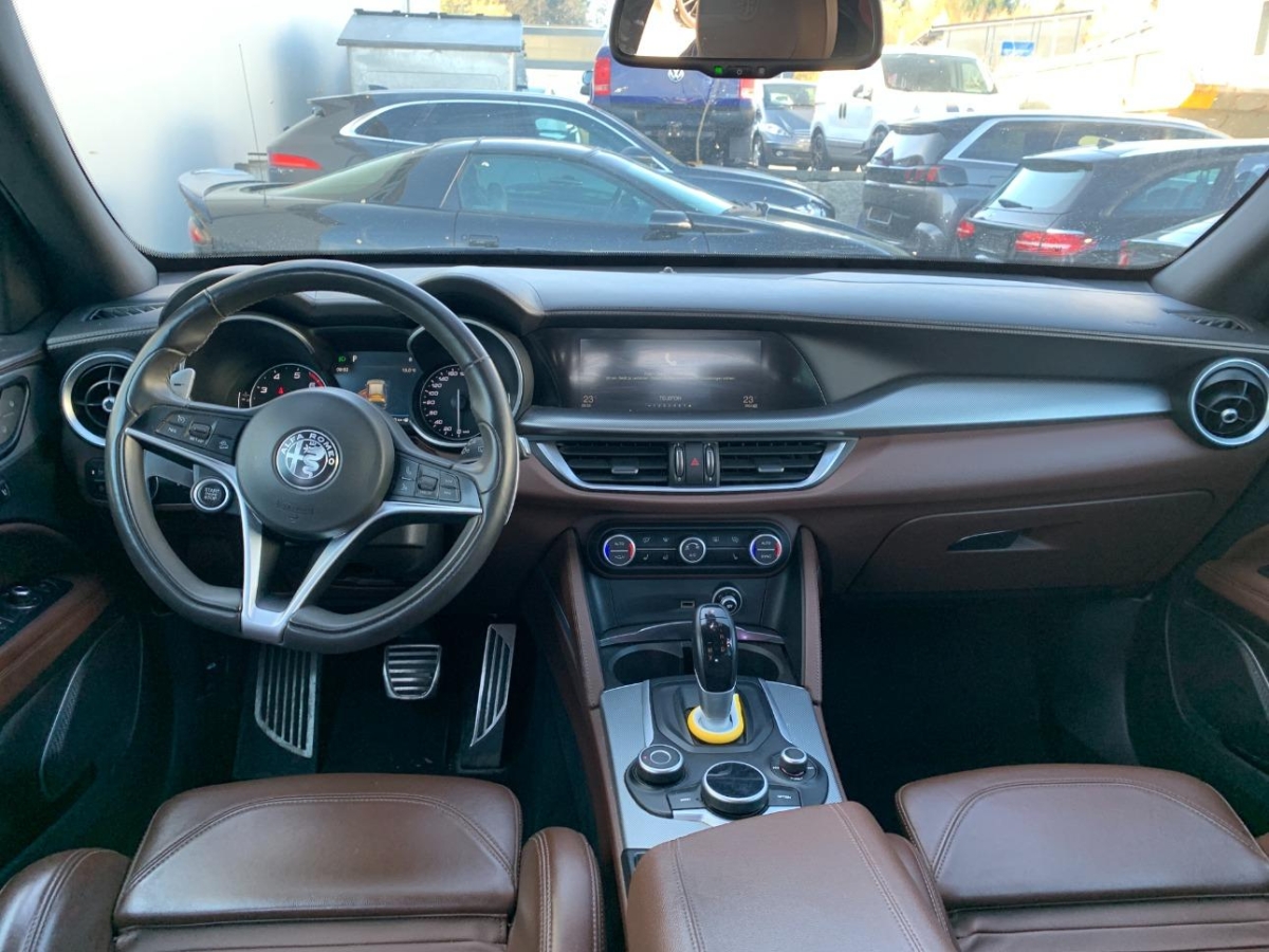 Katalysator geregelt, Start/Stop-Funktion, Einstiegsleisten in Aluminium, Stoff-/Leder-Ausstattung, Elektrische Heckklappe, Reifendruckkontrollsystem, Lenkradfernbedienung, Lenkrad-Wippschaltung (Paddles), Gurtkontrolle, Rücksitzlehne geteilt abklappbar, Multifunktionales Instrumentendisplay, Reifenreparatur-Set, Allradantrieb permanent, Wegfahrsperre elektronisch, Assist: Spurhaltewarnung LDW (Lane Departure Warning), Heckscheibenheizung, Dynamisches Kurvenlicht, Airbag: Airbag Beifahrer deaktivierbar, 3-Punkt-Sicherheitsgurte auf allen Plätzen, Make up-Spiegel beleuchtet für Beifahrer, Airbag: Window-Kopfairbags, 4 Leichtmetallfelgen 18J mit Pneu, Teppichfussmatten, Getriebe: 8-Stufen-Automat sequentiell, Airbag: Seitenairbag für Fahrer und Beifahrer, Getönte Scheiben, Pollenfilter (Staubfilter), Dachhimmel beleuchtet, 3 Kopfstützen hinten, Licht: Drittes Bremslicht, Integrated Brake System, Tempomat, USB Anschluss in der Mittelarmlehne vorne, Alfa Connect 6,5''-Infotainmentsystem mit 8 Lautsprechern und Rotary Pad(inkl. DAB, MP3, Aux-In, Bluetooth), Licht- und Regensensor, Bi-Xenon Lichtanlage, Elektronisches Stabilitäts-Programm (ESP) mit Antischlupfregelung (ASR) und Hill Holder, AUX Anschluss in der Mittelarmlehne vorne, Lederlenkrad, Bremsassistent (BAS), Innenraumbeleuchtung, Zentralverriegelung mit Fernbedienung, LED-Tagfahrlicht, 2-Zonen-Klimaautomatik, Verchromtes Auspuffendrohr, Airbag: Airbag Fahrer und Beifahrer, Elektrische Fensterheber vorne + hinten, Parksensoren hinten, Licht: Nebelschlussleuchte, Elektromechanische Parkbremse, Unterbodenpannele, ISOFIX Kindersitzvorrichtung, ABS, EBD elektronische Bremskraft- verteilung, Notbremsassistent