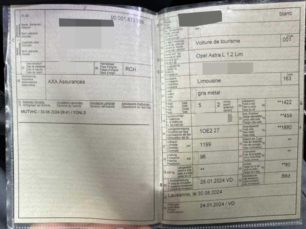 OPEL ASTRA L BENZIN 5 Türen/portes Astra 1.2i Turbo Swiss Premium A 1.2, 130 PS