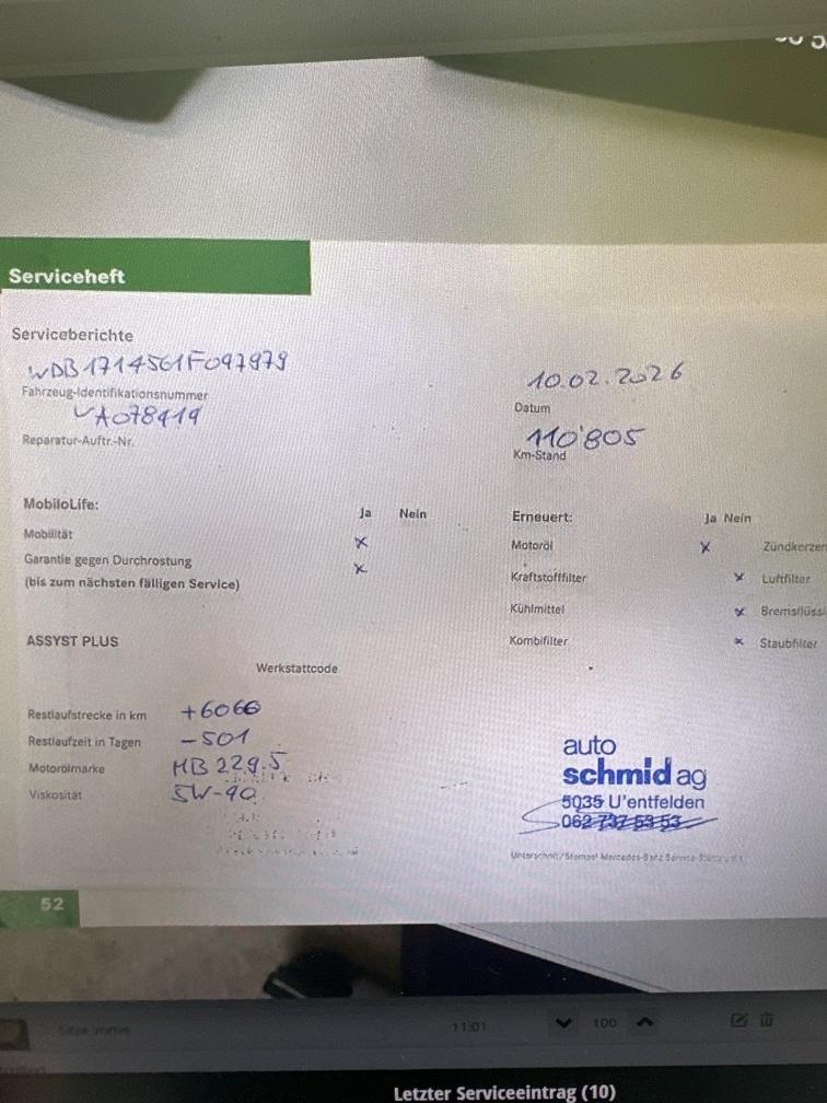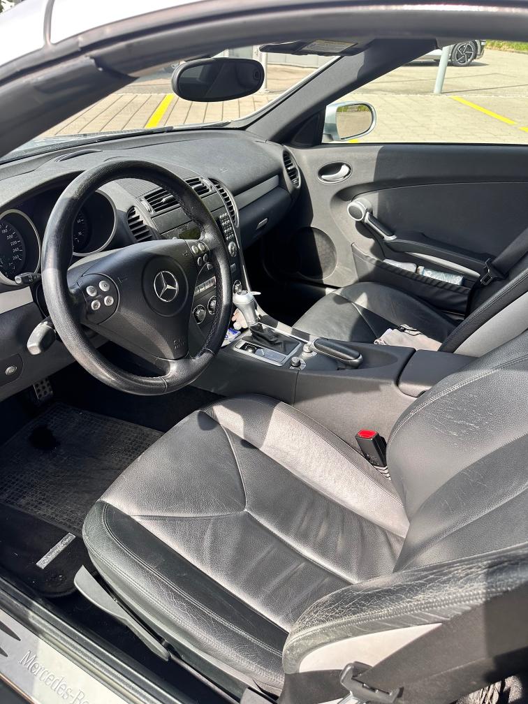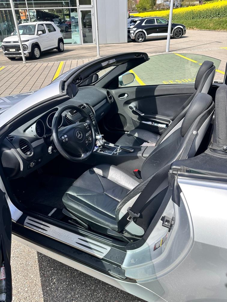 Gepflegter Mercedes SLK Automat mit V6-Motor. Cabrioverdeck funktioniert ohne Mängel. Service wurde im 02/2026 bei Mercedes durchgeführt. Fahrzeug weist altersbedingte Gebrauchsspuren auf. Motor mit Ölverlust Getriebe ebenfalls mit Ölverlust (Dichtungwechsel nötig). Querlenker stark beschädigt (MFK-relevant). Spur muss eingestellt werden. Wir testen und prüfen nicht alle Funktionen des Fahrzeugs. Jede Gewährleistung wird wegbedungen, insbesondere sind Wandlung und Minderung ausgeschlossen.